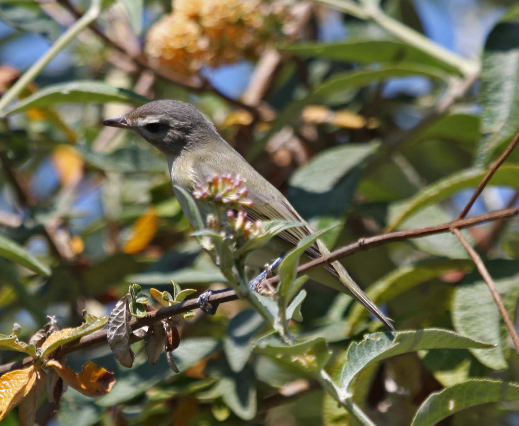 Bell's Vireo is a small North American songbird that breeds in central and southwestern U.S. and Mexico. In winter they migrate to Mexico. They will use Western poison oak shrubs or vines as nesting locations.