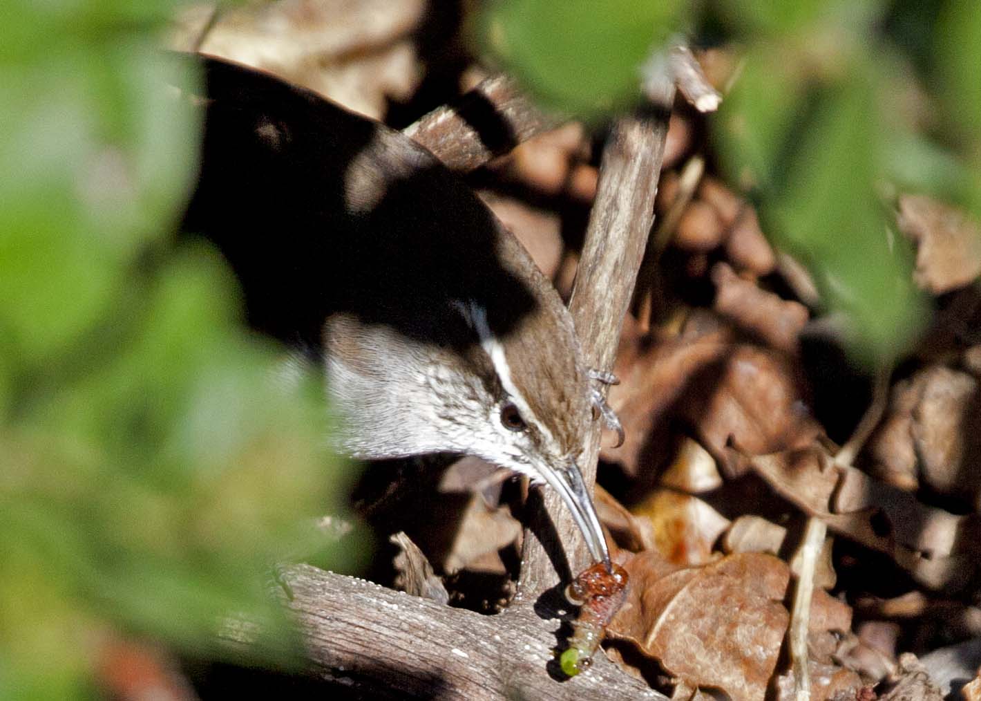 Note catepillar in beak