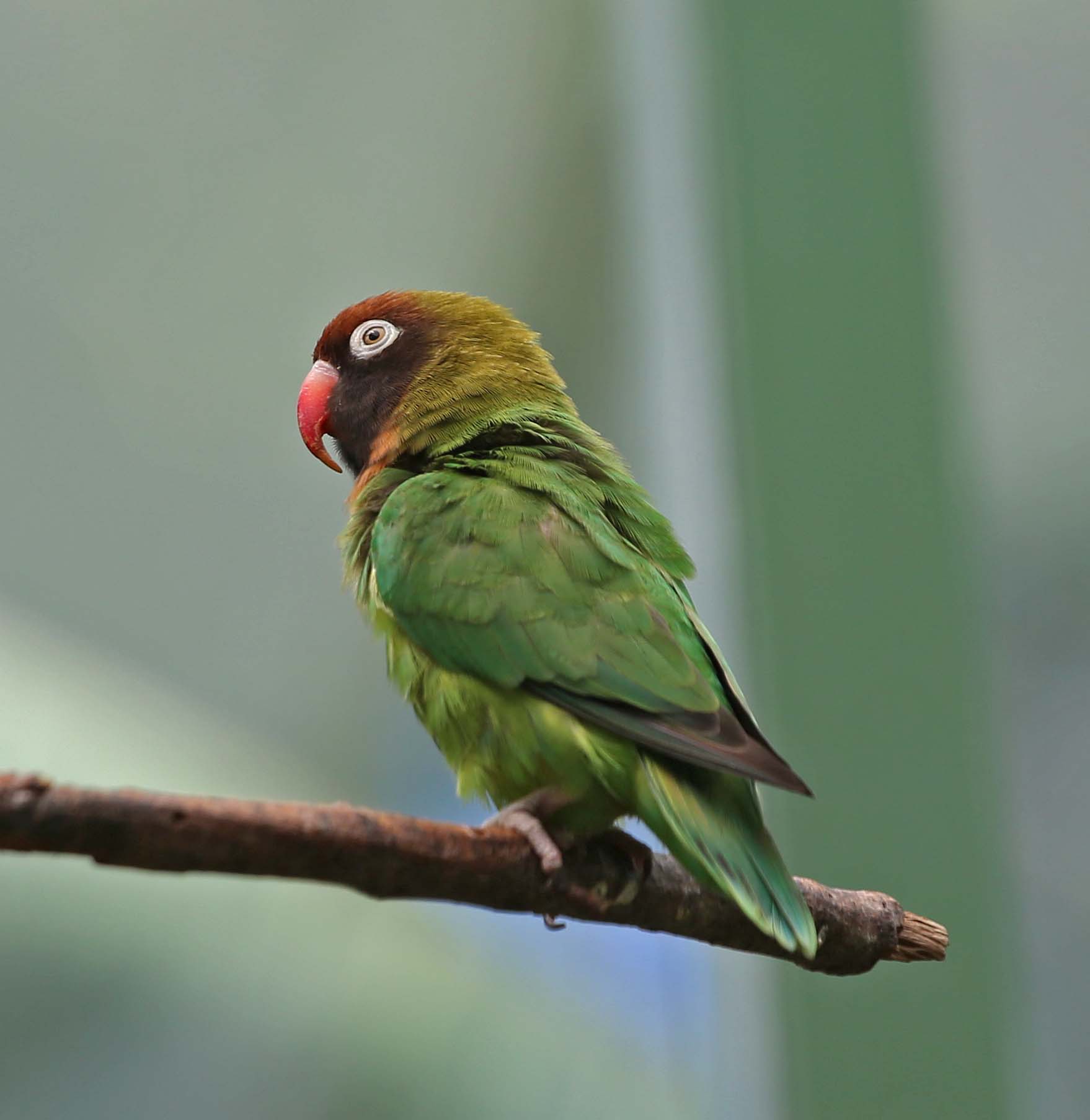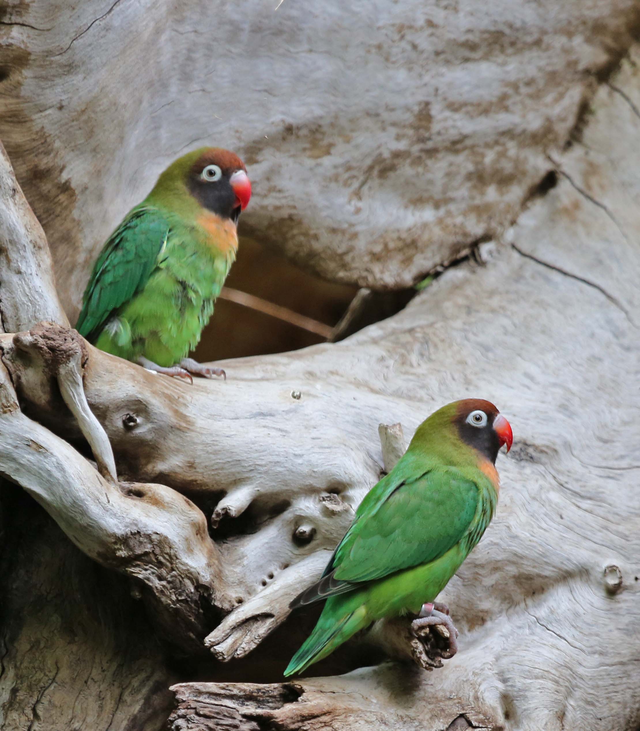 The Black-cheeked Lovebird is endemic to southwest Zambia. They inhabit deciduous woodlands close to water.