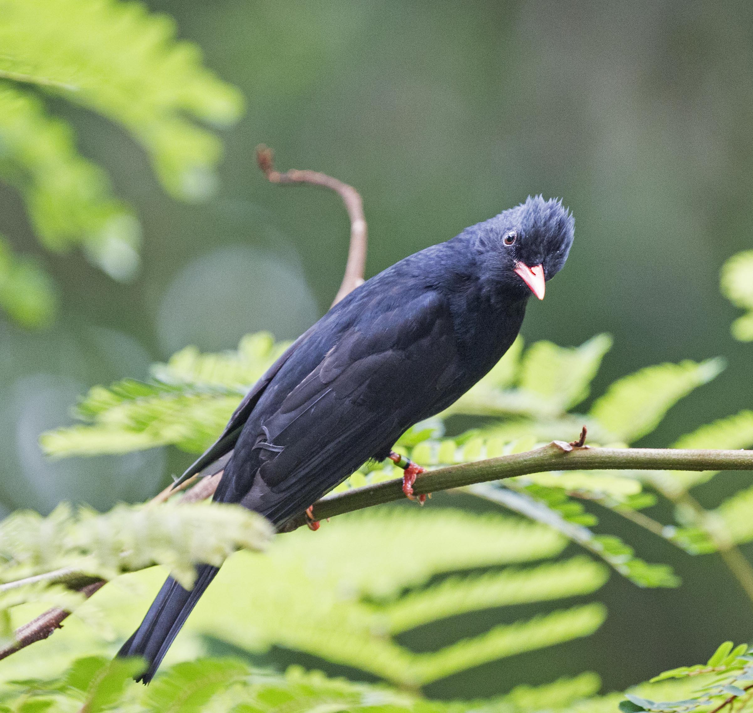 The Black Bulbul is also known as the Himalayan Black Bulbul or the Asian Black Bulbul. They are found in southern Asia from India east to southern China. There are approximately 10 subspecies of this bird and the plumage varies quite a bit. For example the nominate subspecies has a white head, the subspecies nigerrimus is black.