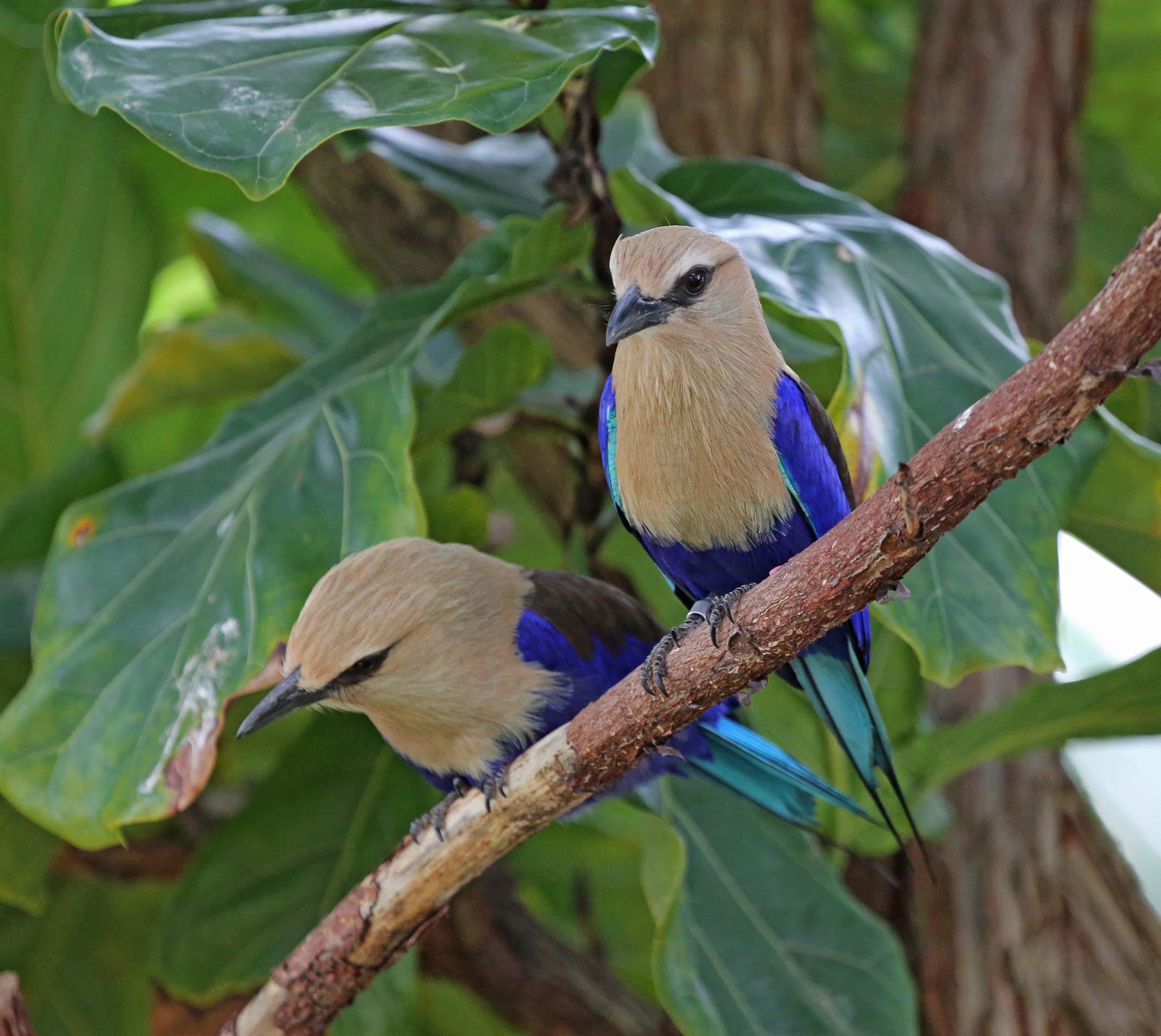 The Blue-bellied Roller is found in Africa. They are found in open country where they perch on trees, post or overhead wires. They eat grasshoppers and other large insects.
