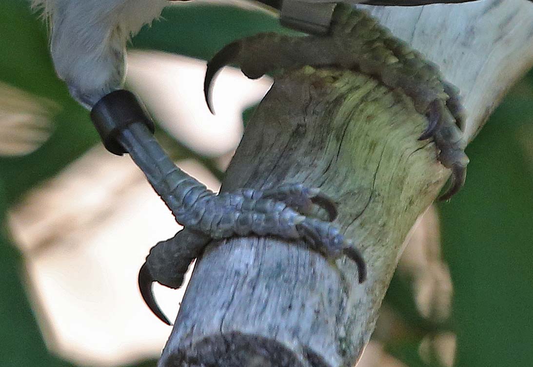Tongue/feet: Blue-faced Honeyeaters evolution has produced a tongue and bill that is very suitable for getting the nectar out of flowers. The bill is long and conical. The tongue is long and frayed with bristles that soak up the nectar when the tongue is inserted into a flower. When the tongue is returned to the mouth, the bristles are pressed against projections on the roof of the mouth, squeezing out the nectar. This can happen 10 times per second.