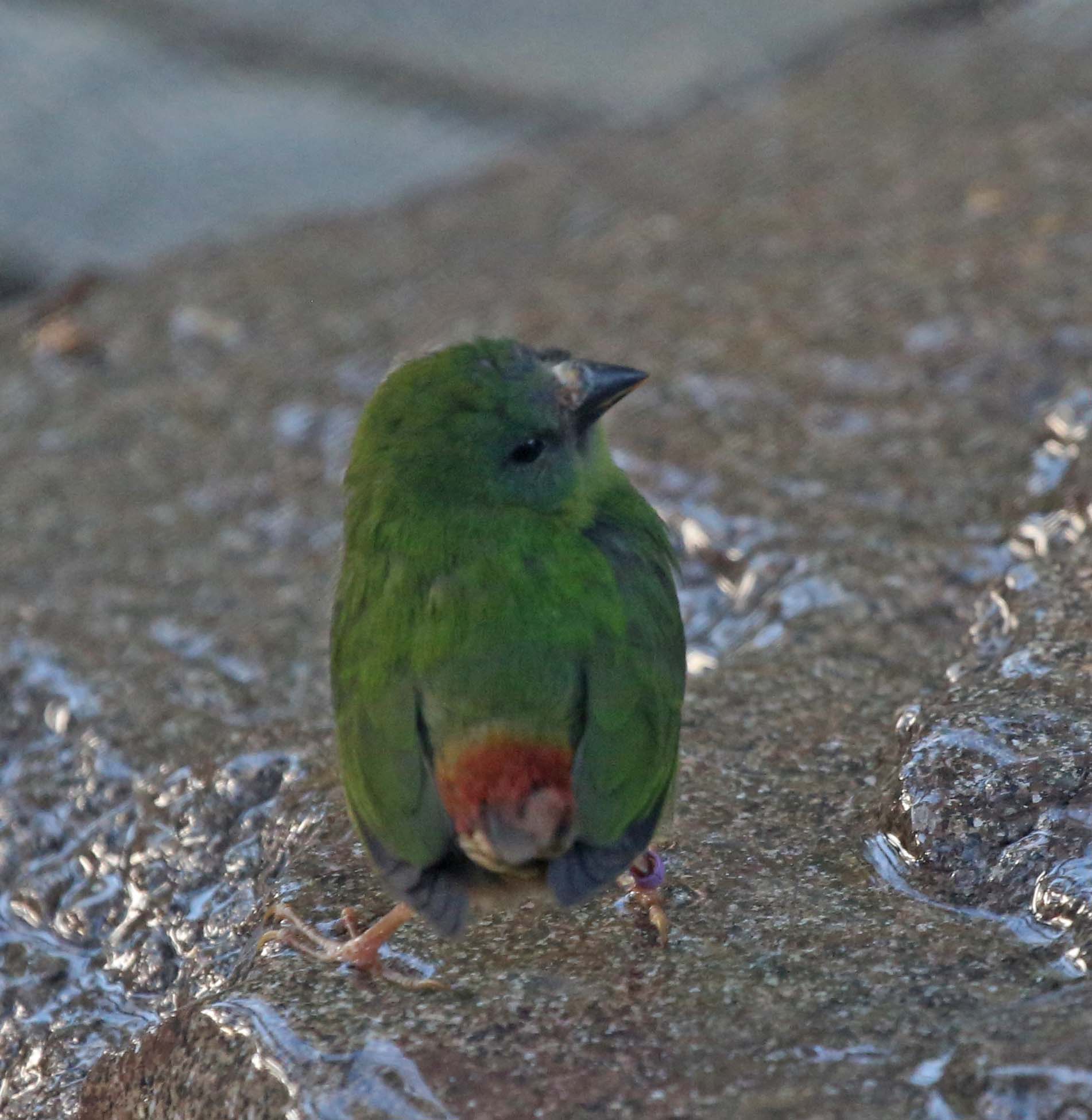 The Blue-faced Parrotfinch is found in north-eastern Australia, Japan, Indonesia and other islands in Southeast Asia. They have also been introduced into France. They are a mostly green blue with a red tail. The male has more blue on the face.