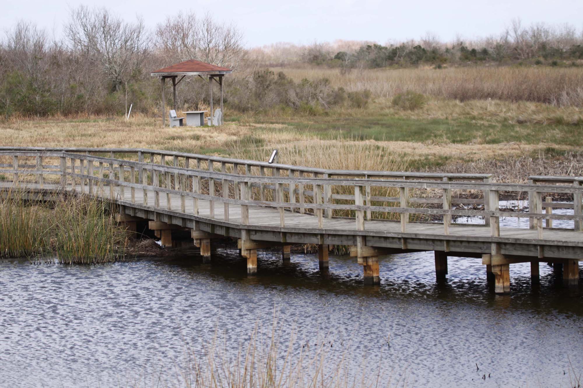 Brazoria has a freshwater slough that winds through salt marshes.