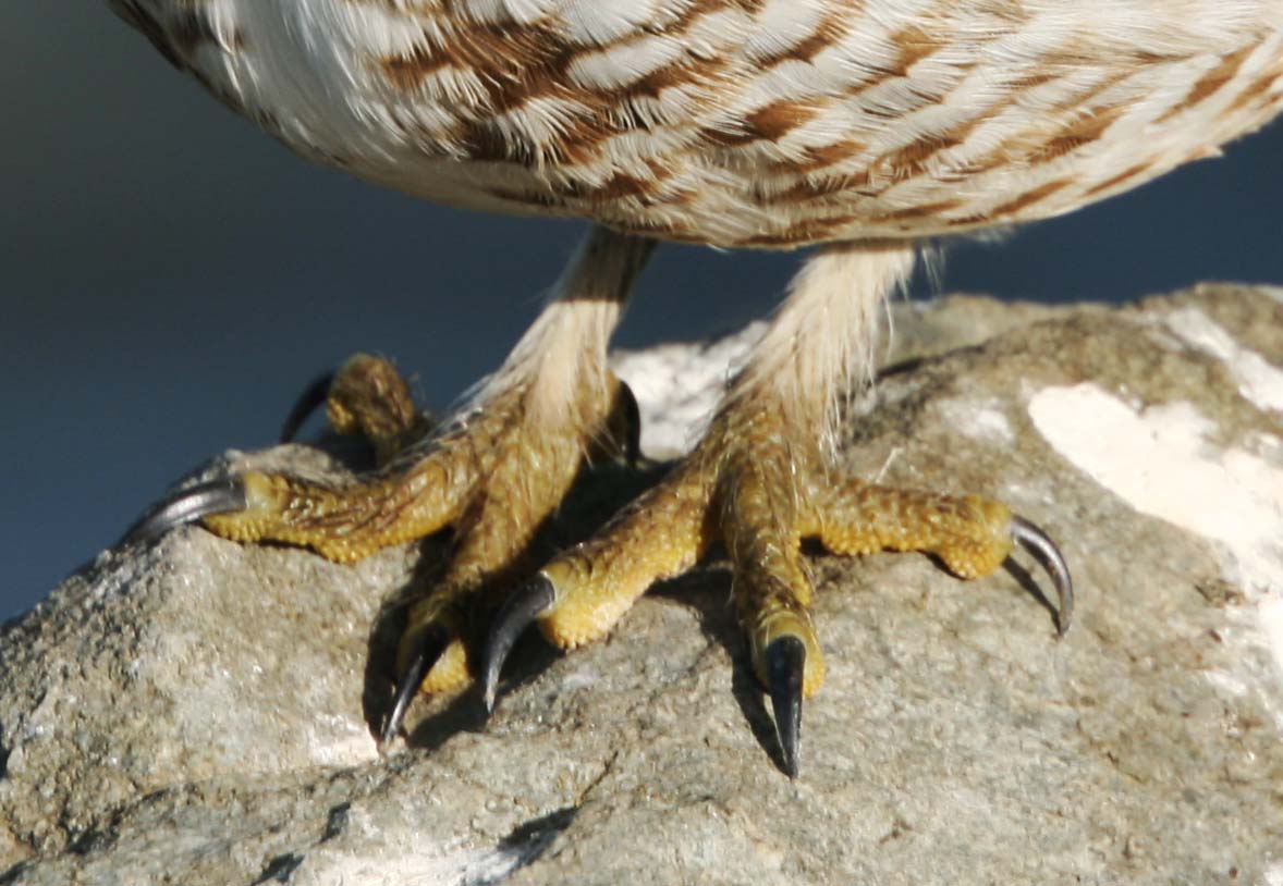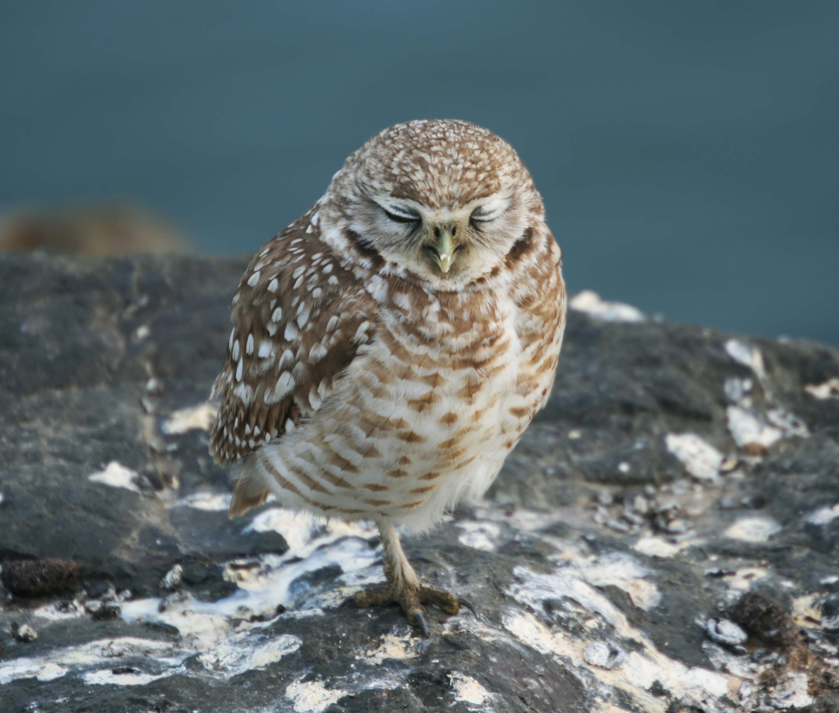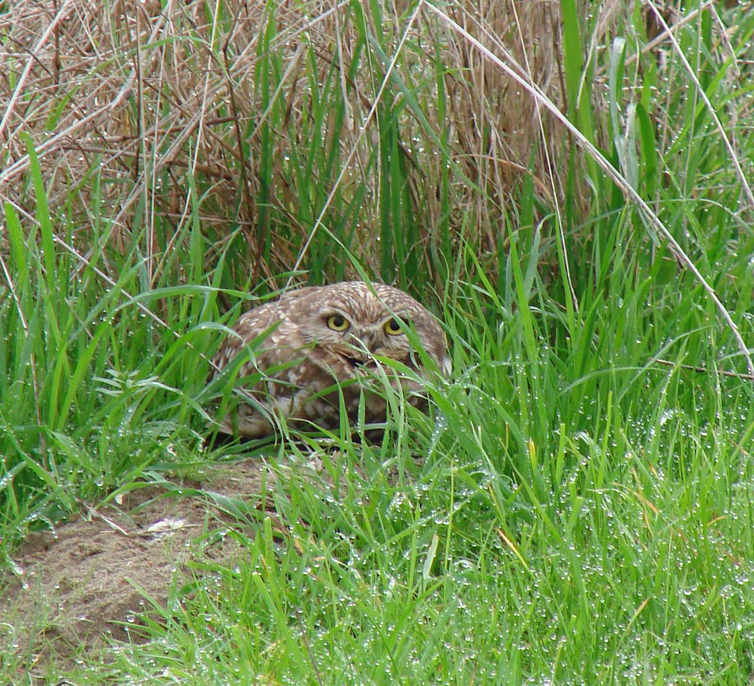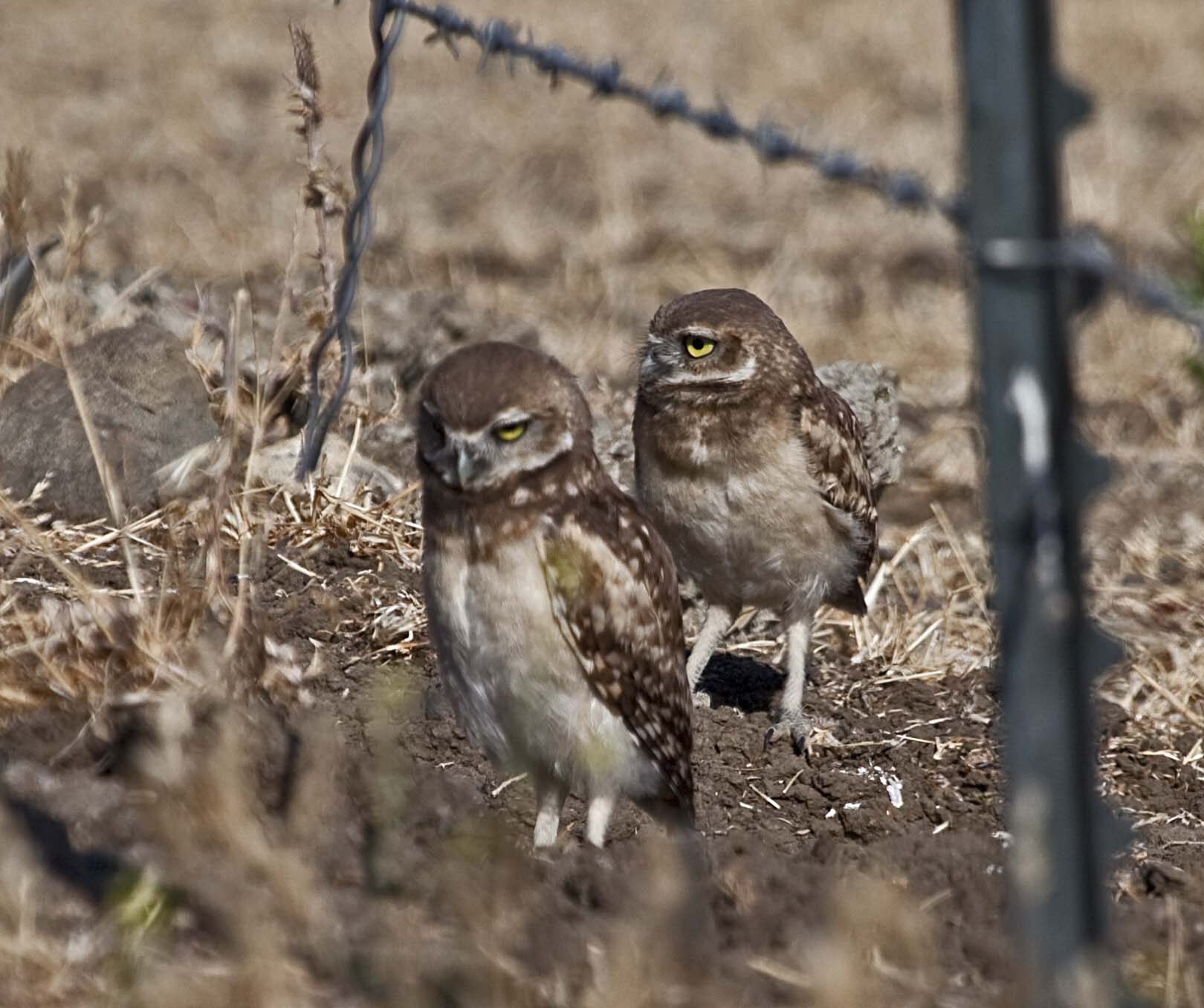 The Burrowing Owl is a small owl with long-legs and a short tail that is found in North and South America. They primarily eat large insects and small mammals (principally rodents). They nest in abandoned animal burrows or crevices. They frequently perch on posts and rocks or can be seen peeking out of their burrows.