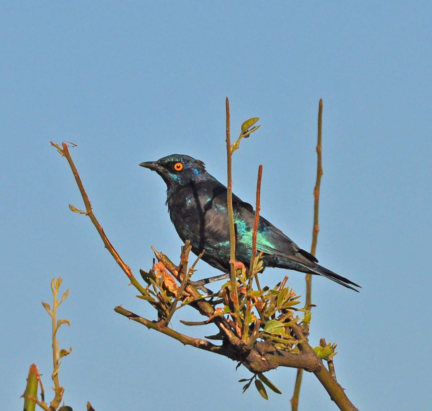 The Cape Glossy Starling is also known as the Red-shouldered Glossy-starling or Cape Starling. They are found in southern Africa in woodlands, bushveld and in suburbs. Sexes are alike.
