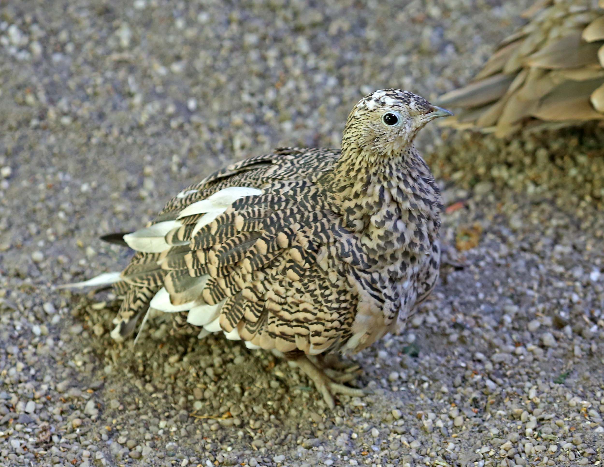 The Chestnut-bellied Sandgrouse is found in central and northern Africa and southern Asia. They live in hot and arid climates but have been known to travel 50 miles in one day in search of water.