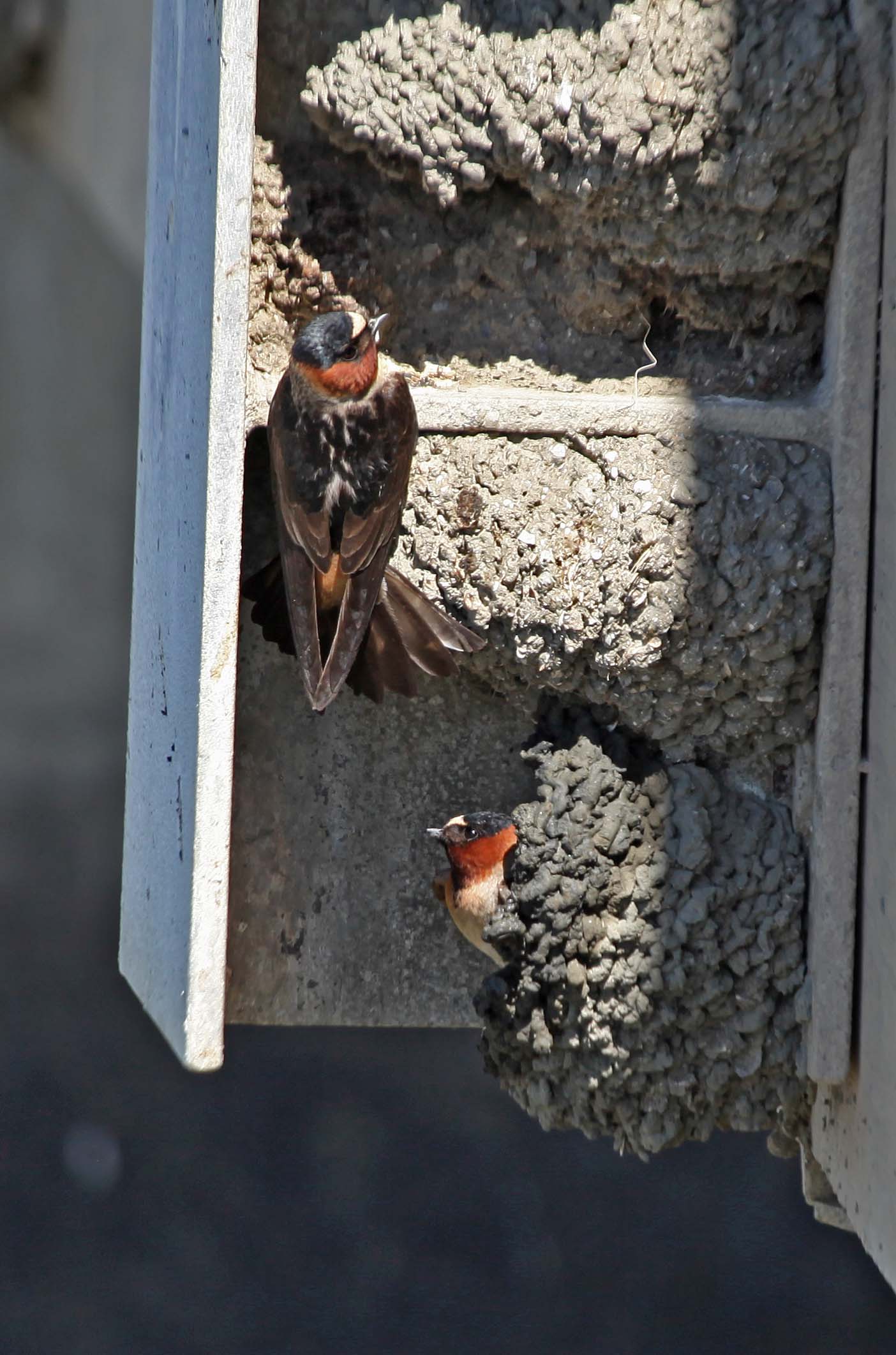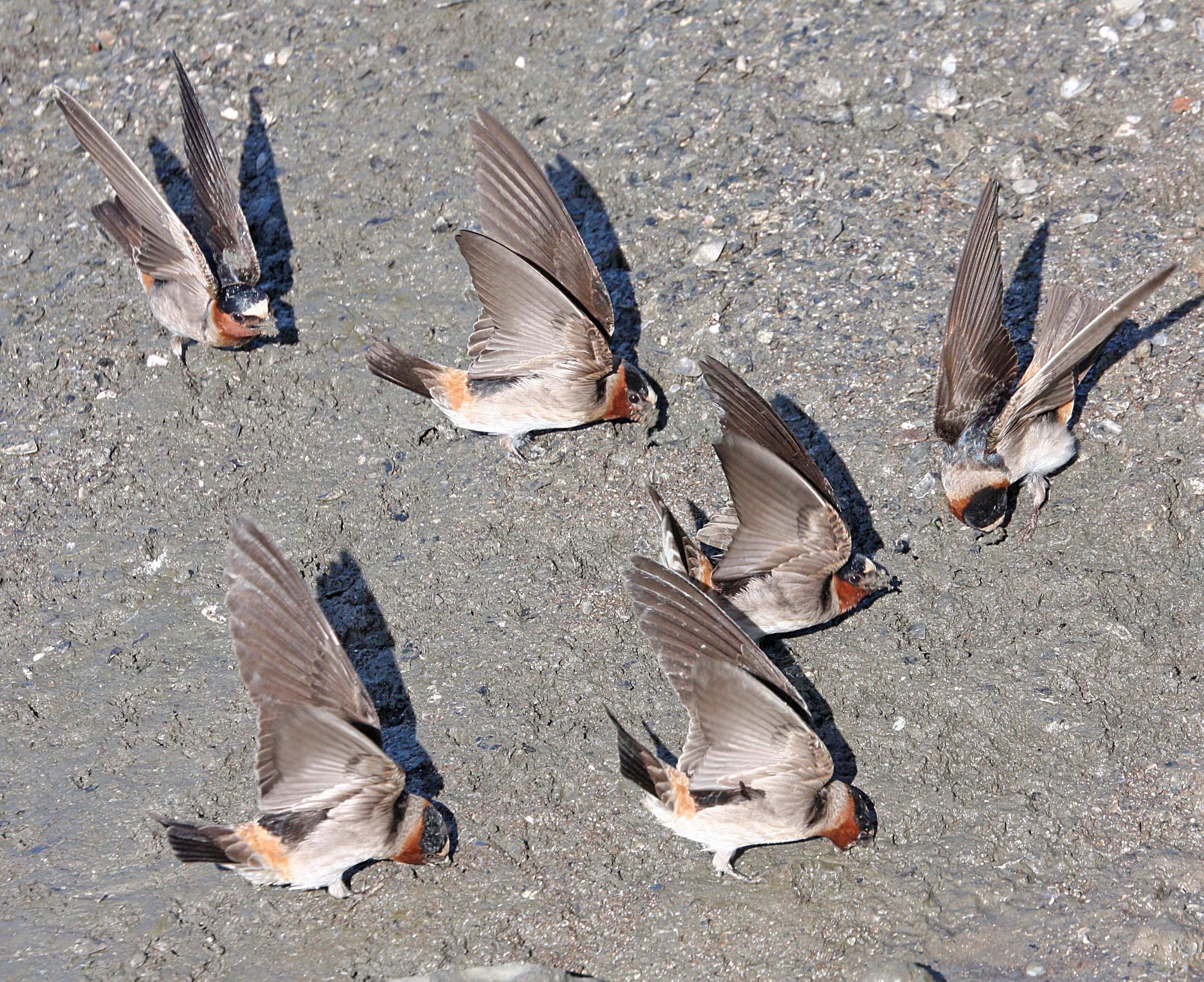 Barn Swallows on the left, lower center is Cliff Swallow, far right Tree Swallow