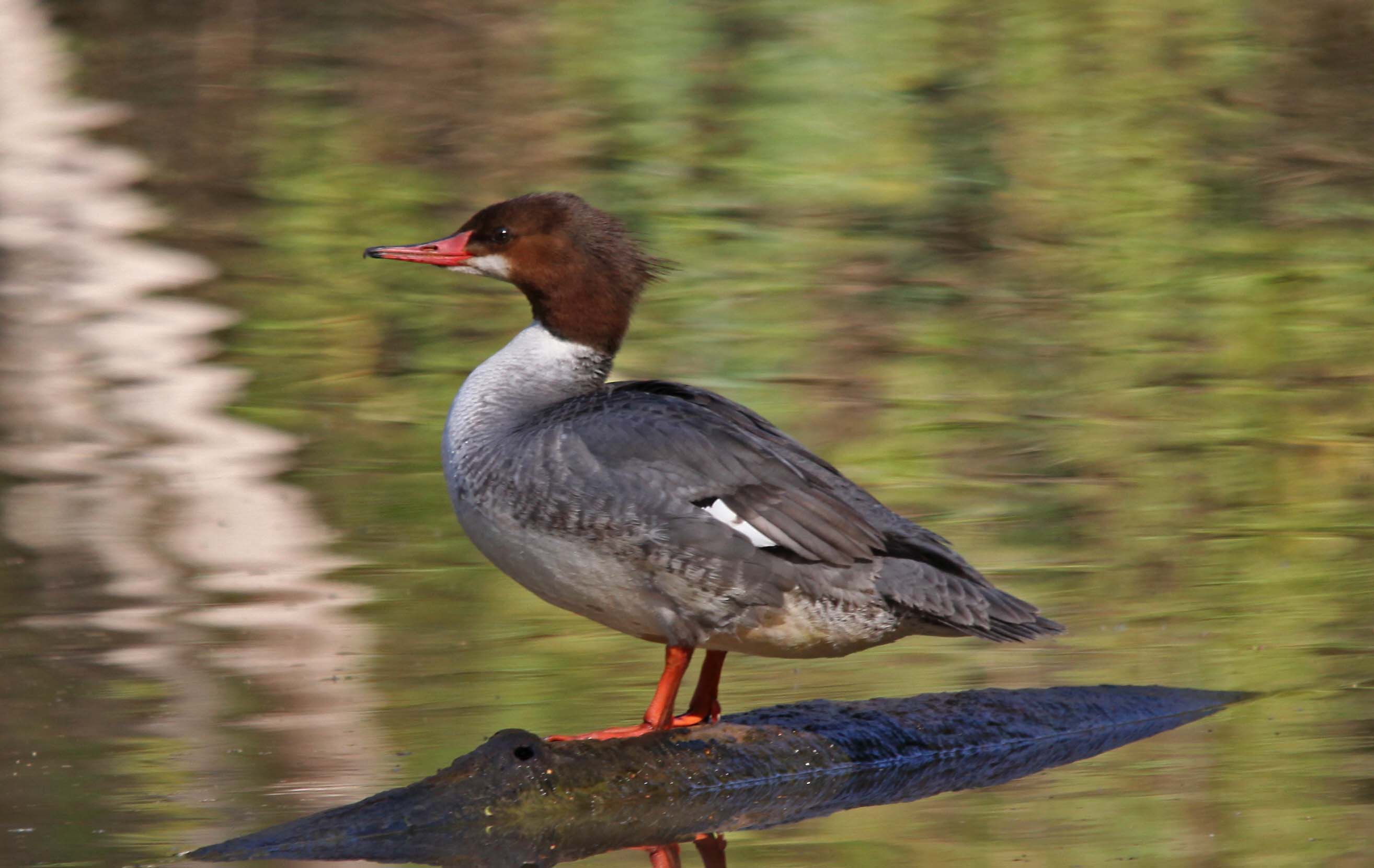 Common Mergansers, or Goosander, are very elegant looking birds. They are found in forested areas near lake and rivers in North America, Europe and central Asia. They are fish eaters and their bills have serrated edges which help them grip their prey.