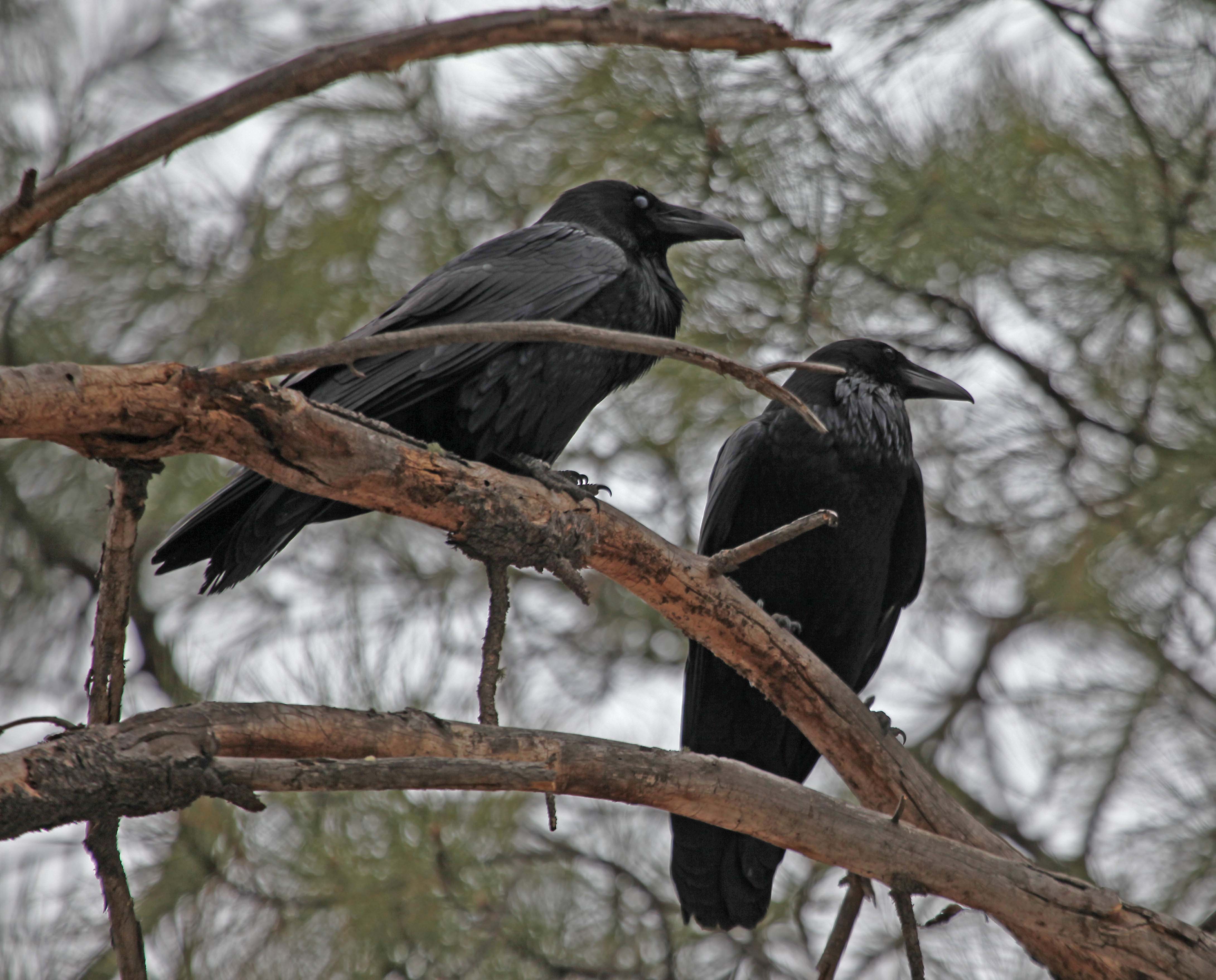 The Common Raven is a large, all black bird in the crow family. They are common through most of the Northern Hemisphere. One of the reasons they has been so successful is because it feeds on almost anything. They will eat carrion, insects, food waste, cereal grains, berries, fruit and small animals. Note, the picture below of a raven with a mole or other critter in its bill.