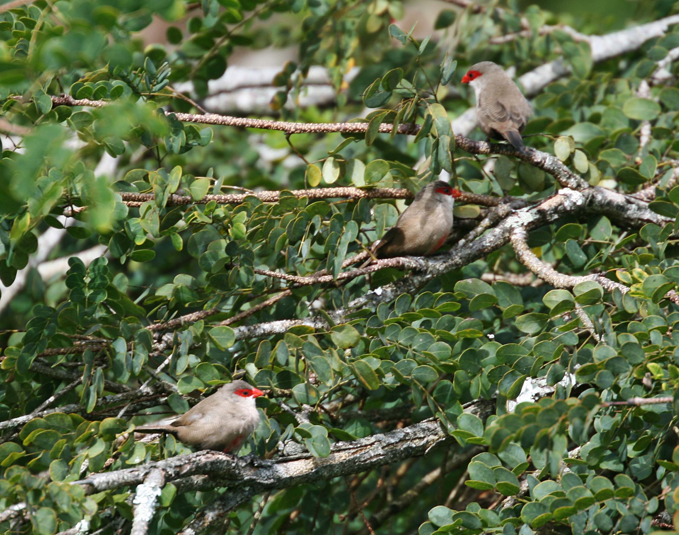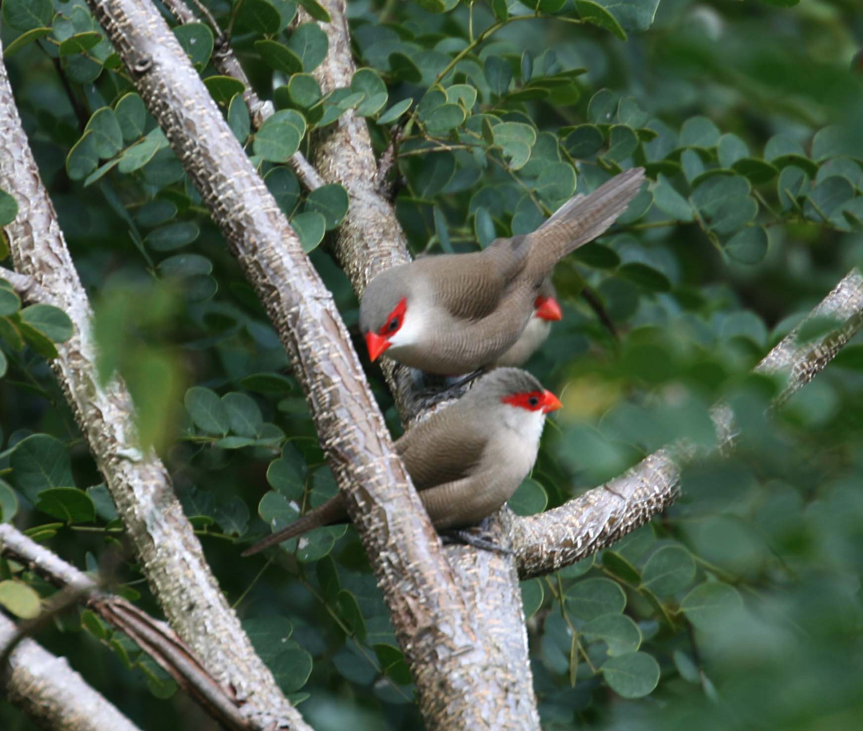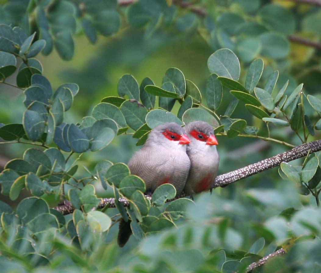 The Common Waxbill is a small passerine bird belonging to the estrildid finch family. They are also known as the St. Helena Waxbill. Common Waxbills are a beautiful little bird that have been imported to Hawaii. Originally, native to sub-Saharan Africa they have been imported to other countries as pets. They eat grass seeds and sometimes insects (especially during breeding season). They usually feed by clinging to the stems of the grass and feeding off the flower heads.
