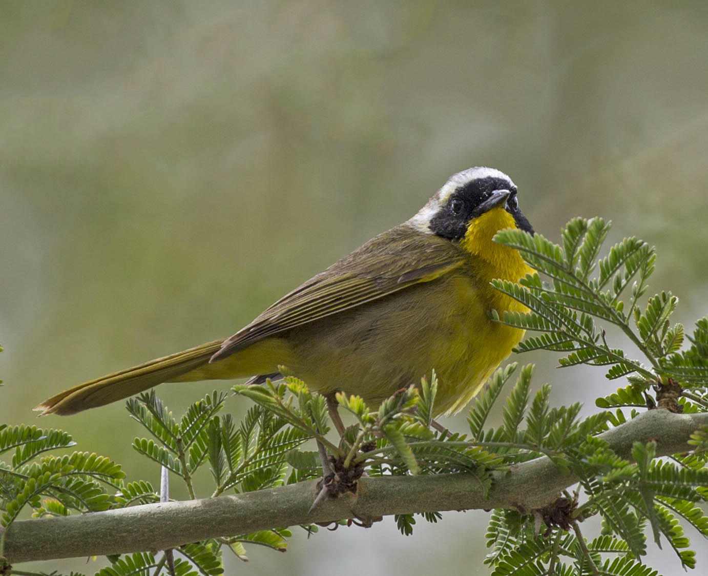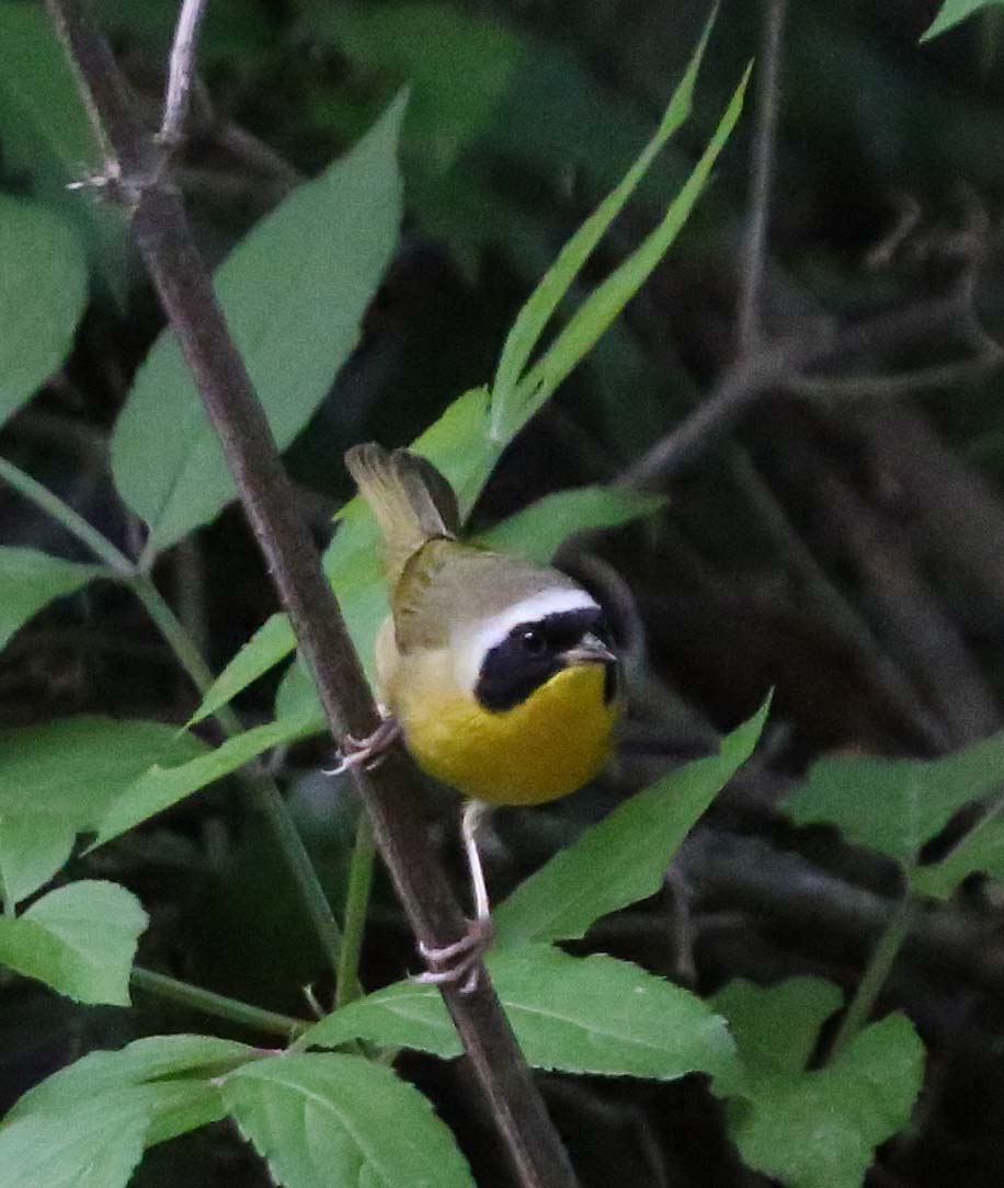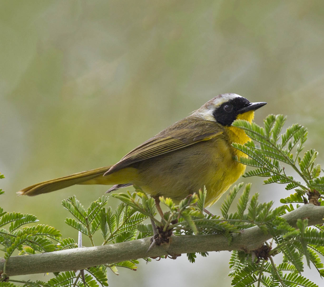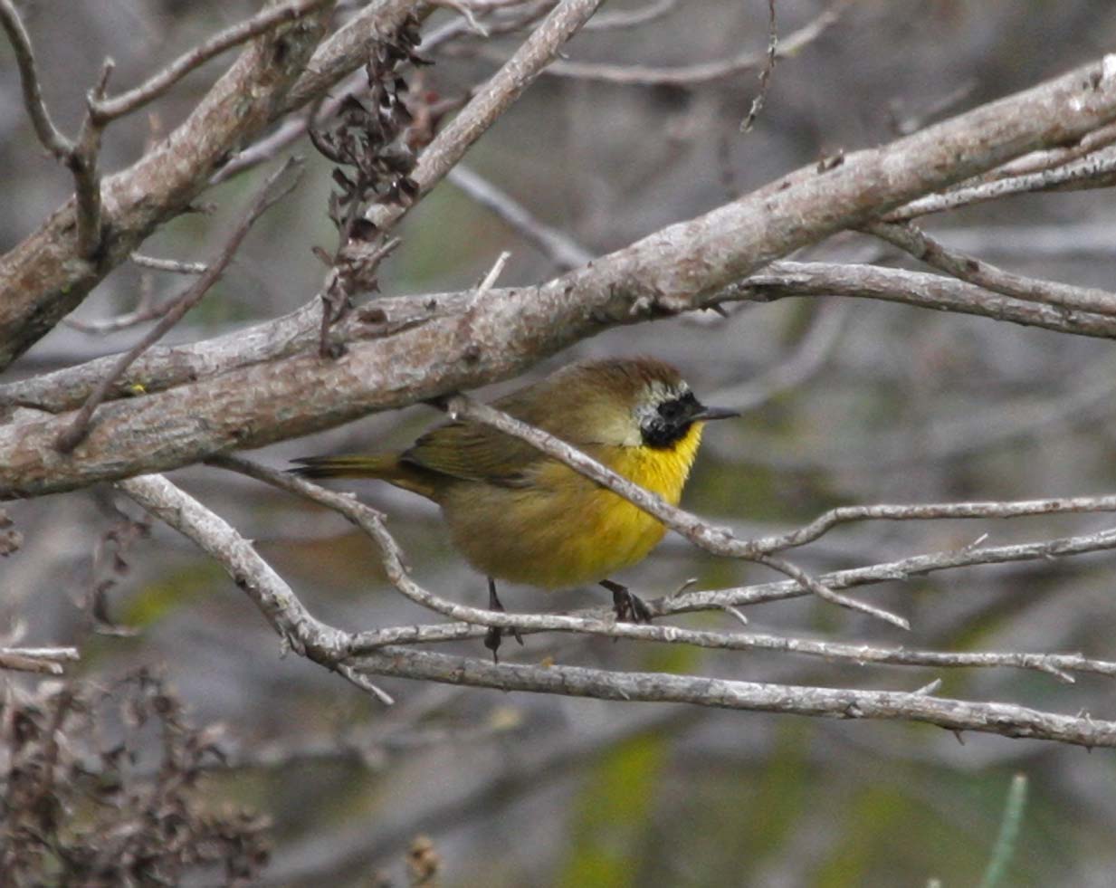 The Common Yellowthroat breeds across much of Canada and the U.S. Winters are spent in Mexico, the Caribbean, and Central America. Year-round populations exist on the Pacific coast, southern U.S. and parts of Mexico. The male is fairly easy to spot because of its black face and yellow throat. They eat insects.