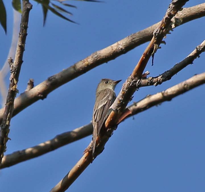 The Eastern Wood-Pewee breeds in the eastern half of the U.S. and winters in northern South America. Diet is insects.