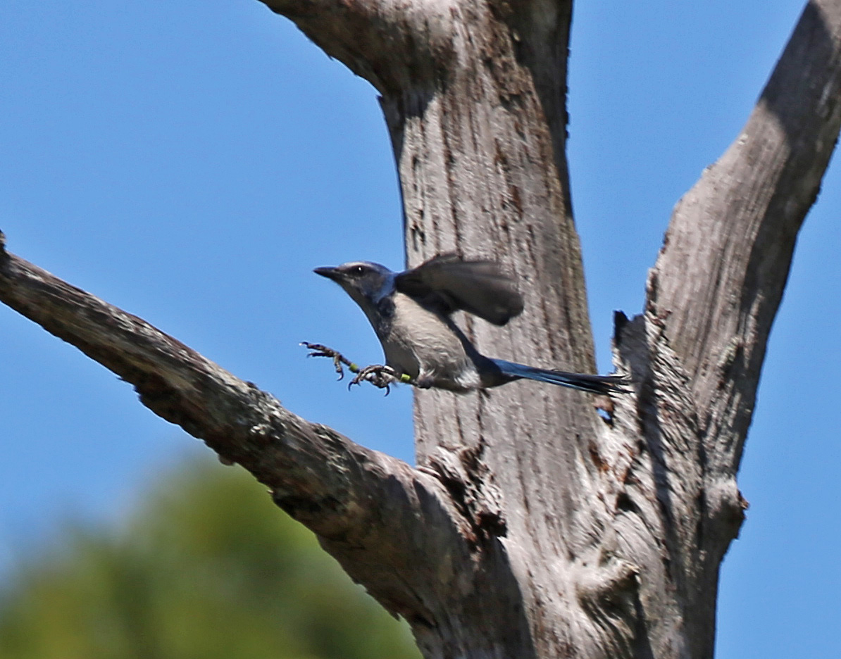 The Florida Scrub Jay is endemic to the state of Florida. Diet includes arthropods, acorns, and small vertebrates.