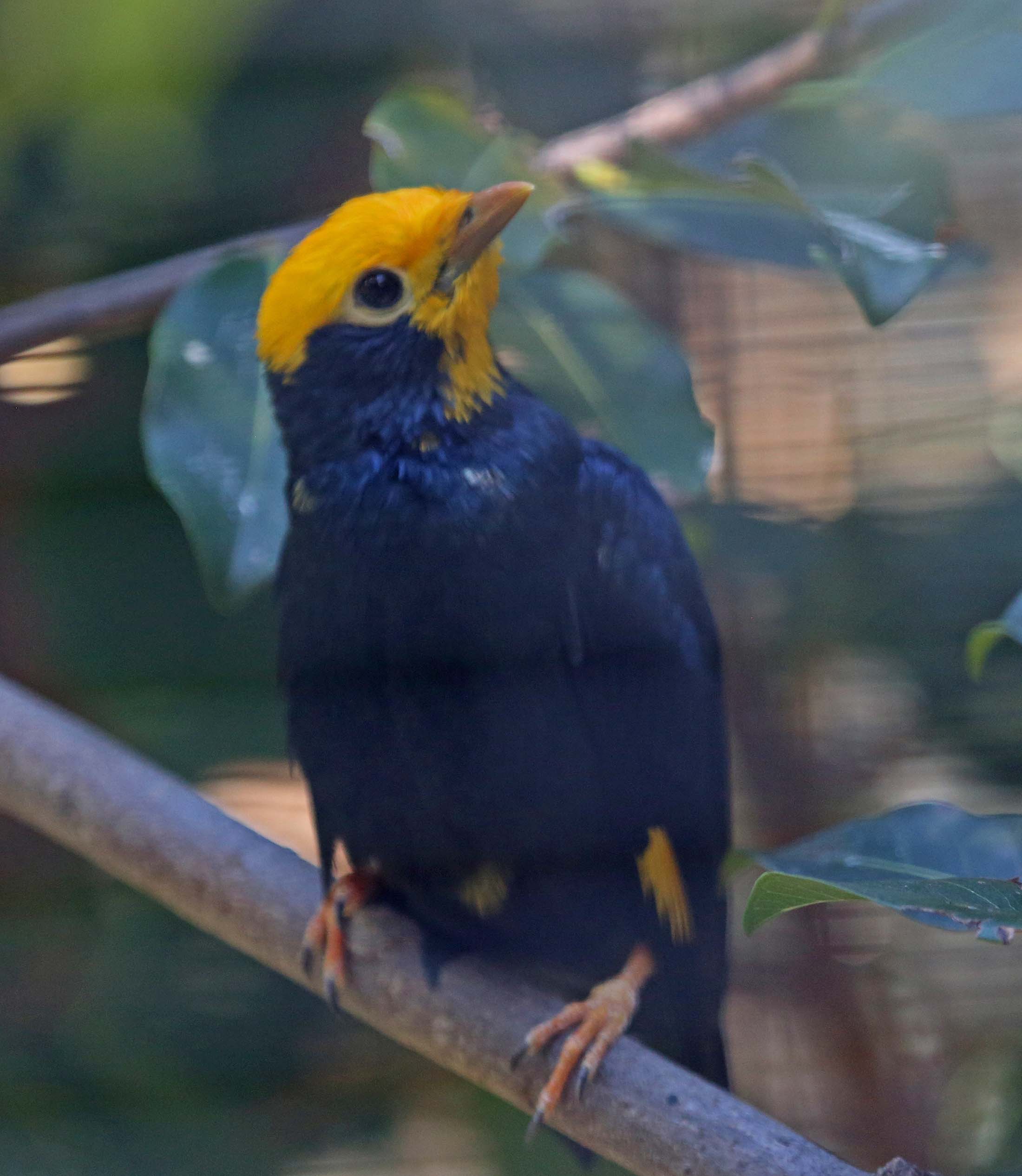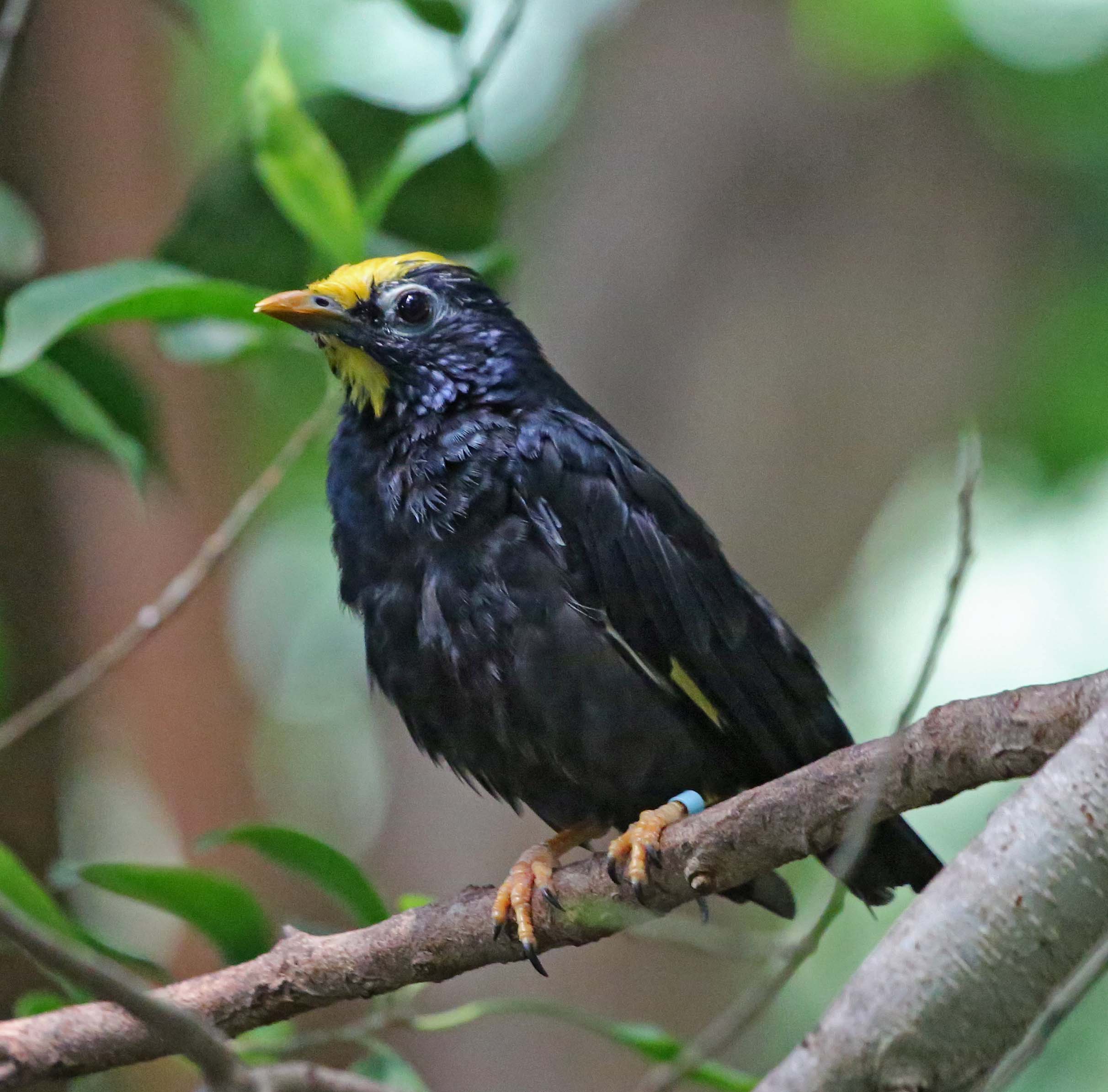 The Golden-crested Myna is found from India to Vietnam and northern Malaysia. The sexes are similar but the male has more yellow on its head.