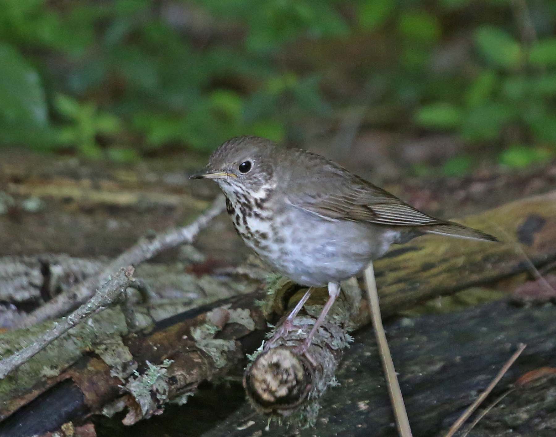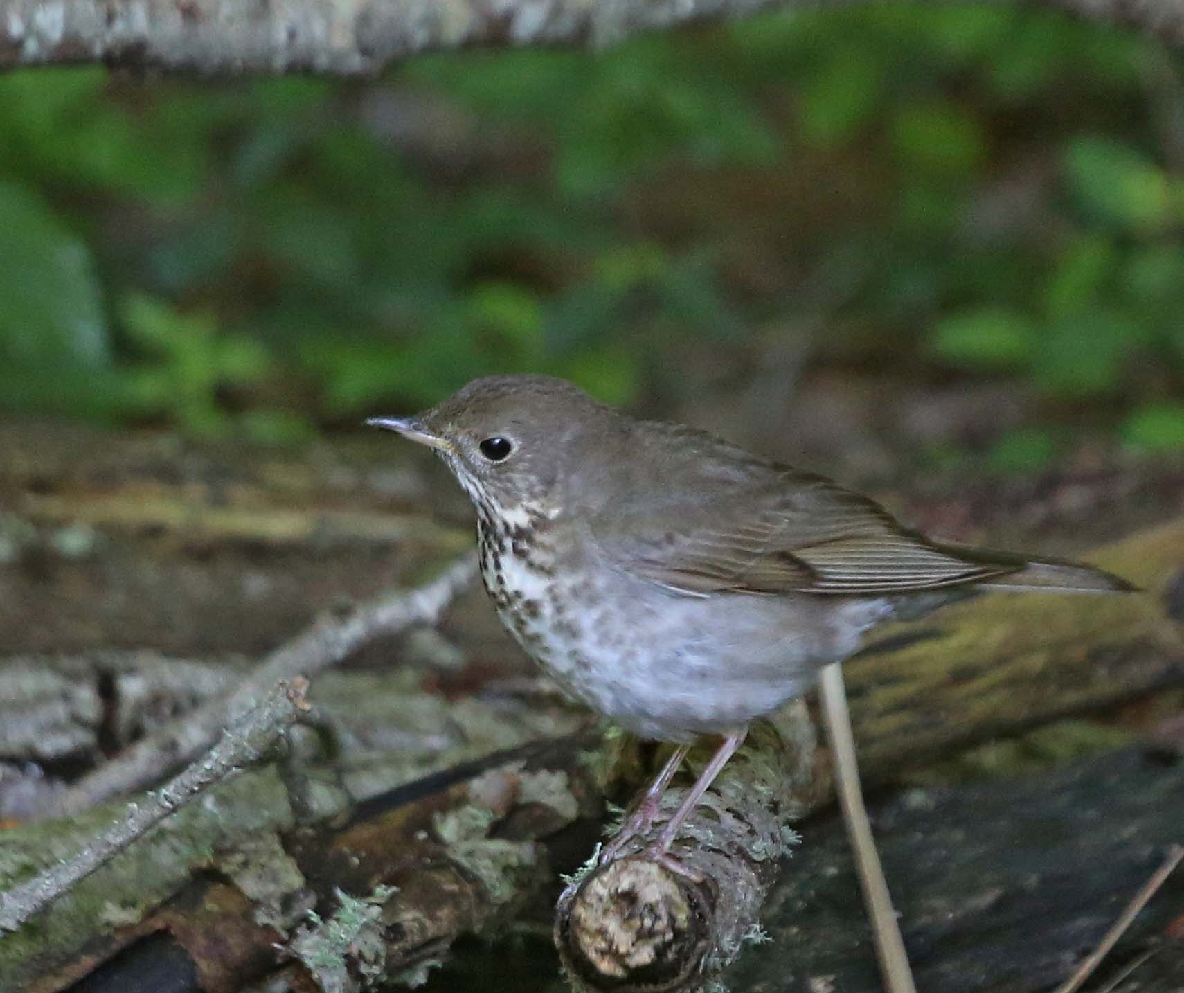 The Gray-cheeked Thrush (U.S.) or Grey-cheeked Thrush breed in Canada, Alaska and eastern Siberia. They winter in northern South America. Their upperparts are brownish gray and the underparts are whitish gray with brown streaks. They have grey cheeks and pink legs. They eat insects and other arthropods.
