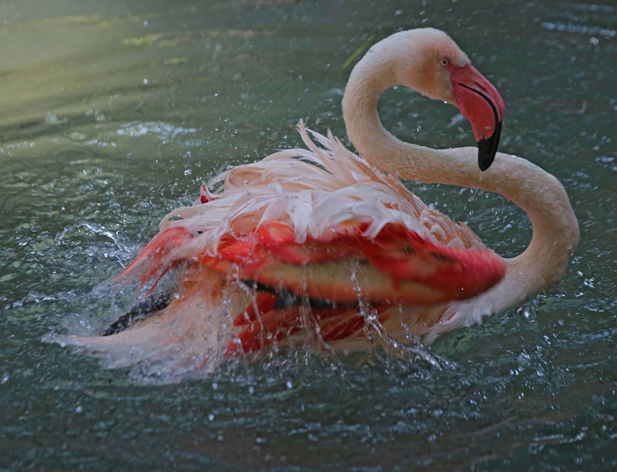 The Greater Flamingo is the largest of the six species of Flamingos. They are found in Africa, India, Pakistan and southern Europe. Their pink plumage is a familiar sight at many zoos.