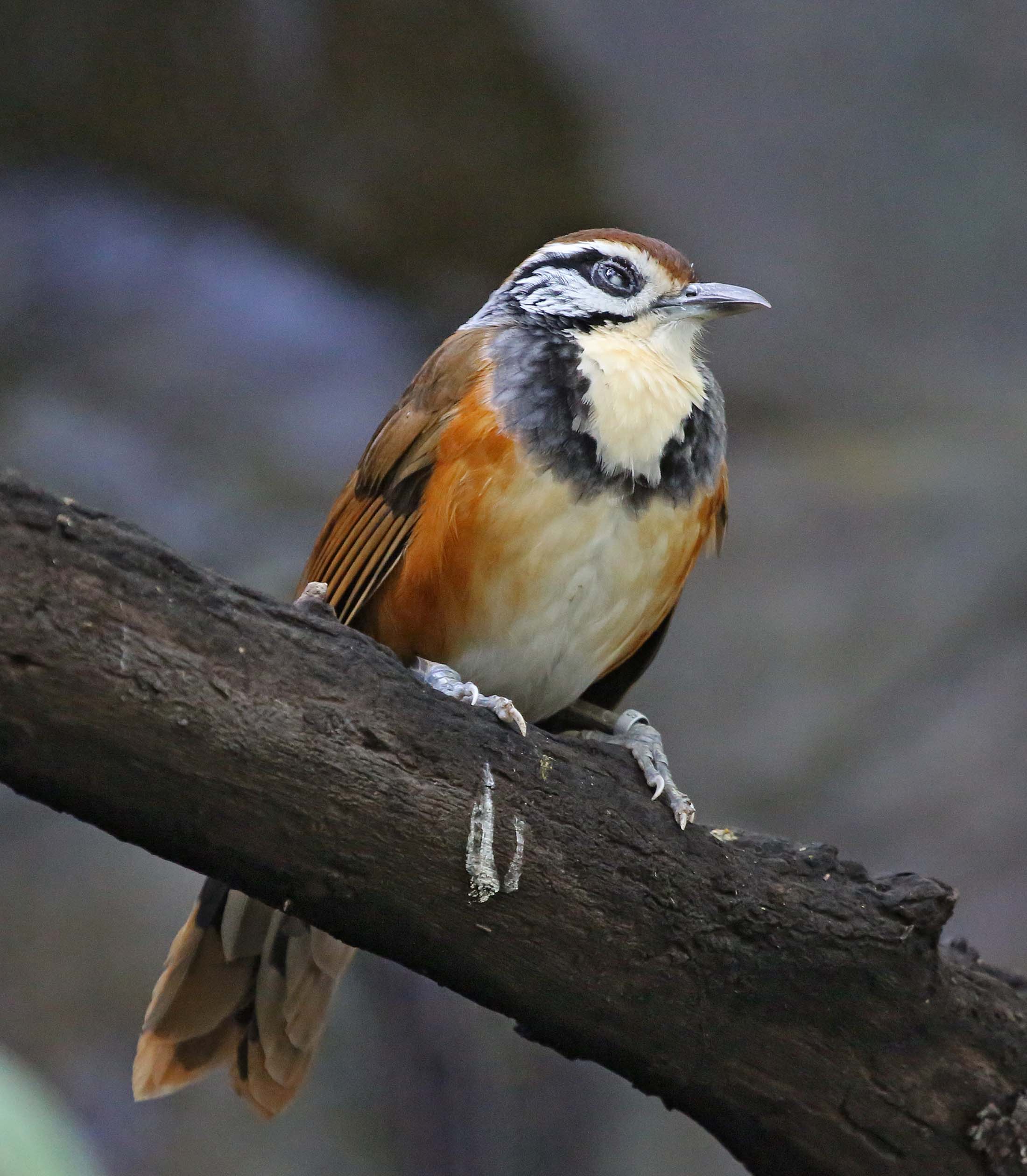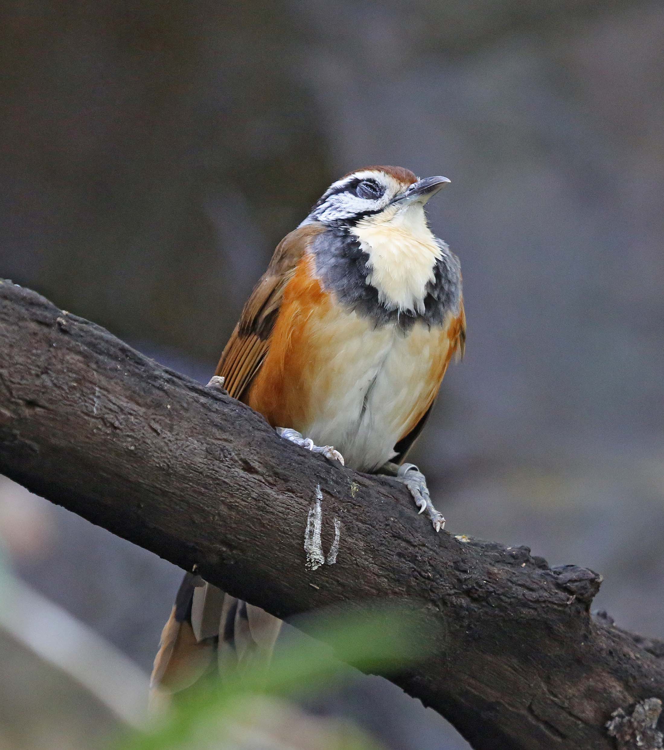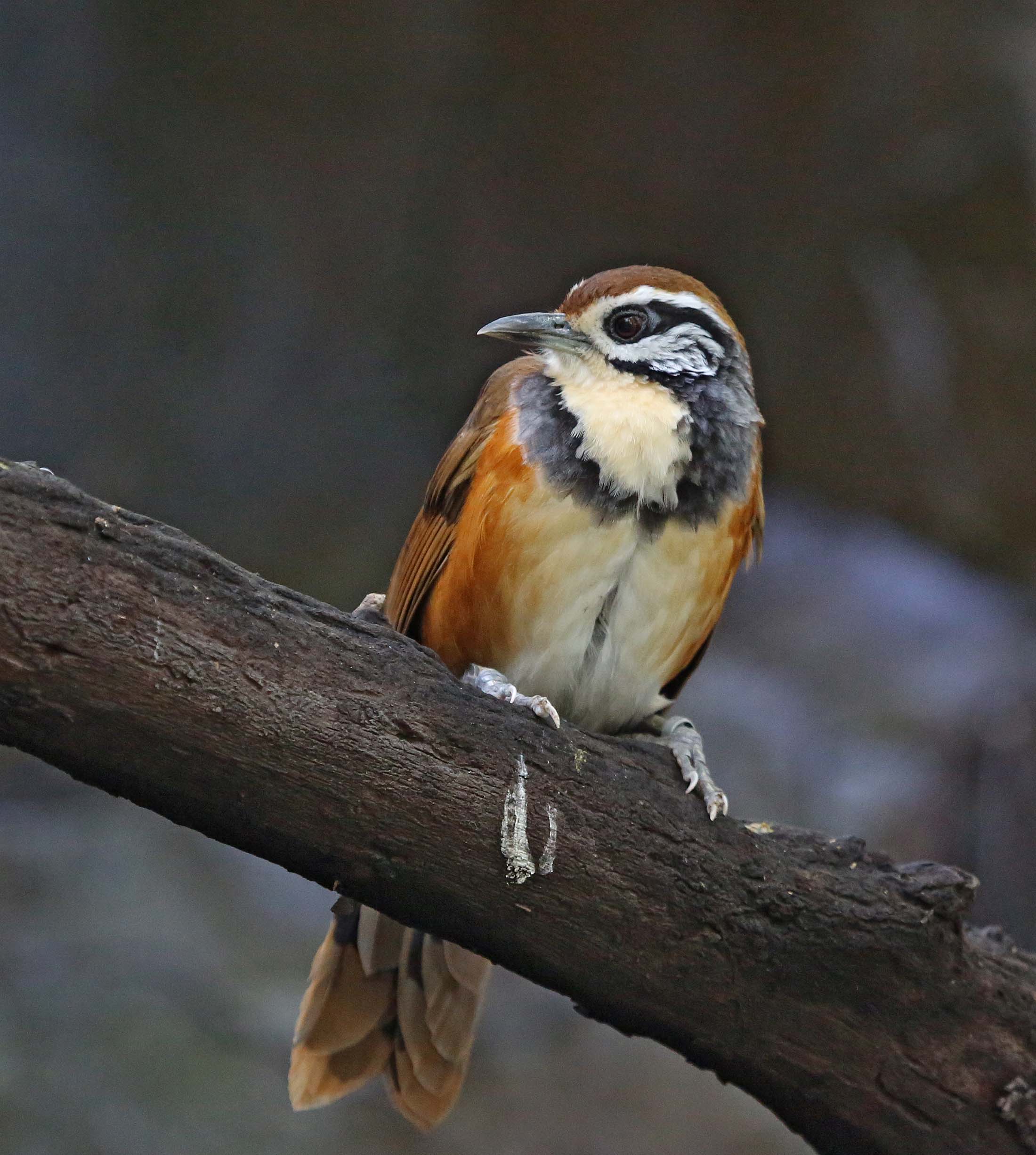 The Greater Necklaced Laughingthrush is found in Bangladesh, Bhutan, China, India, Laos, Myanmar, Nepal, Thailand and Vietnam. Diet is mostly insects with some fruit.