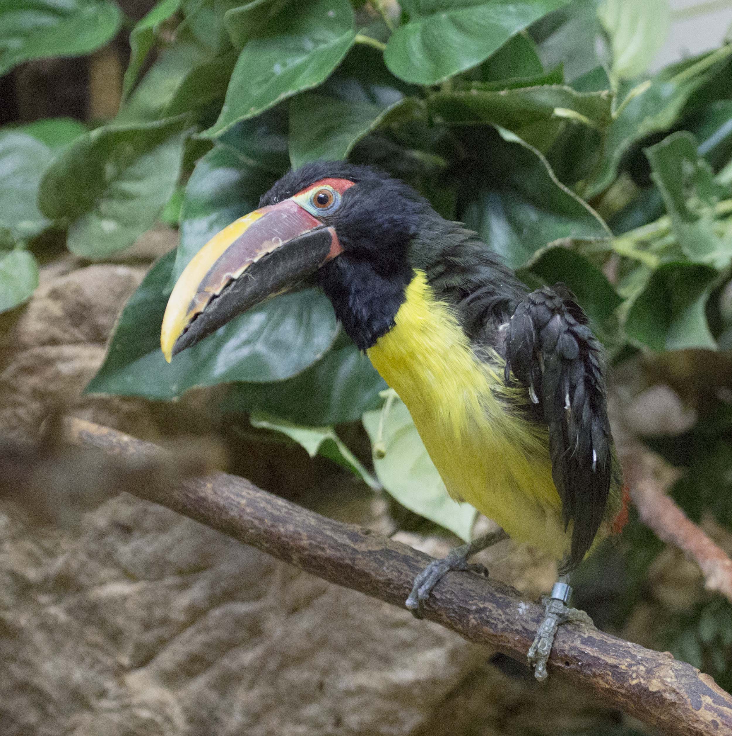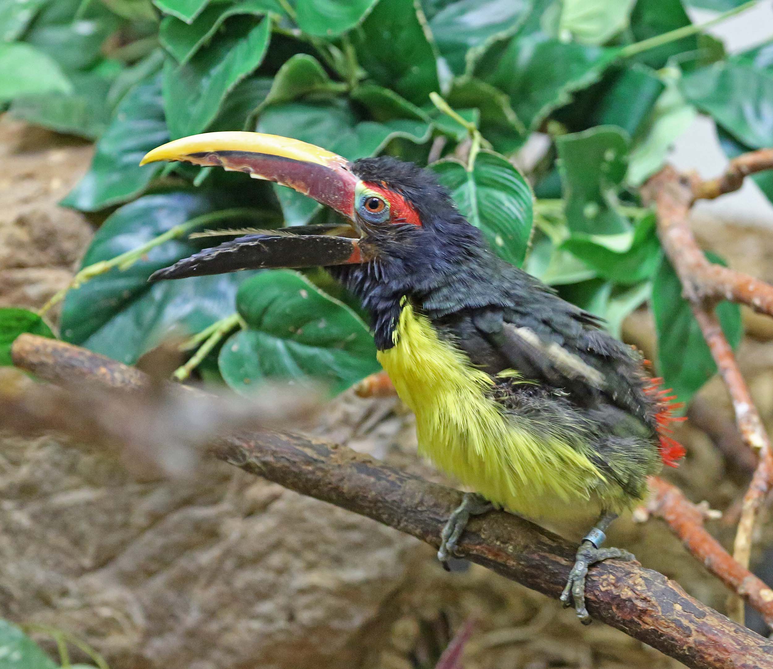The Green Aracari is found in South America in the Amazon Basin, the Guianas and Venezuela. They are one of the smallest in the toucan family and are considered a popular pet. They mainly eat fruit but will sometimes eat insects.