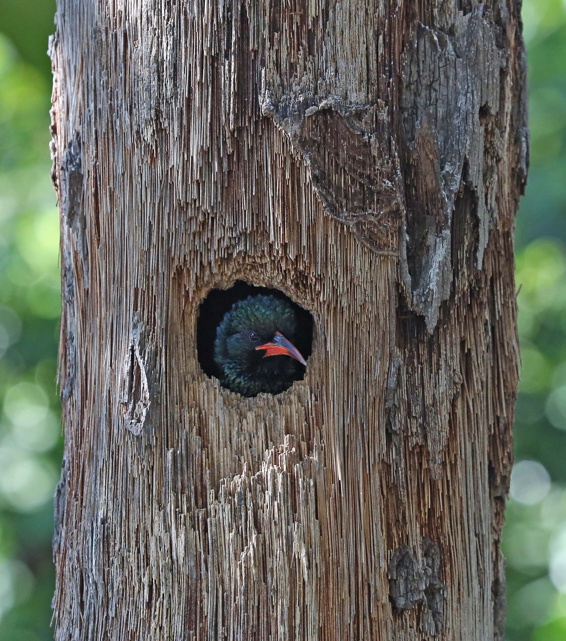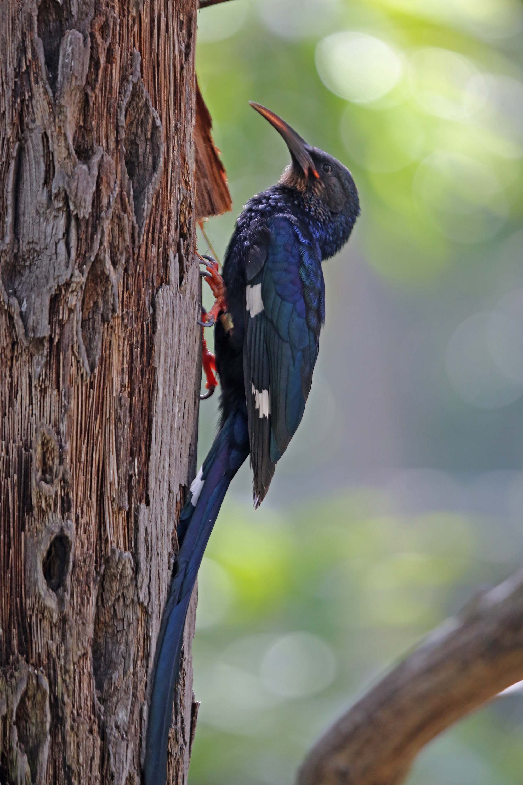 The Green Woodhoopoe is also known as the Green Wood Hoopoe and formerly known as the Red-billed Wood Hoopoe. They are common in the forest, woodland and suburban gardens of most of sub-Saharan Africa. They eat insects including termites.