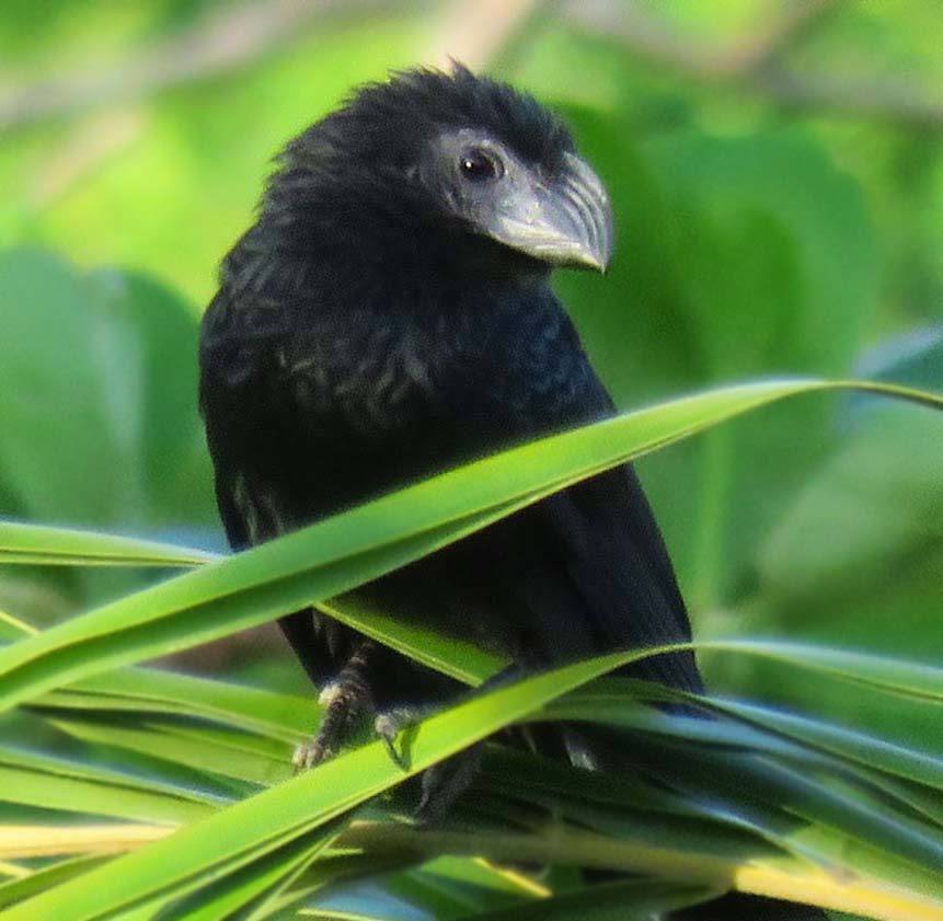 The Groove-billed Ani is a member of the cuckoo family and is found in southern Texas, Mexico, Central America, Chile, Argentina, Ecuador, Peru, and Venezuela. Diet includes insects, seeds and fruits. The Groove-billed Ani live in small groups of one to five breeding pairs and lay their eggs and care for the young communally.