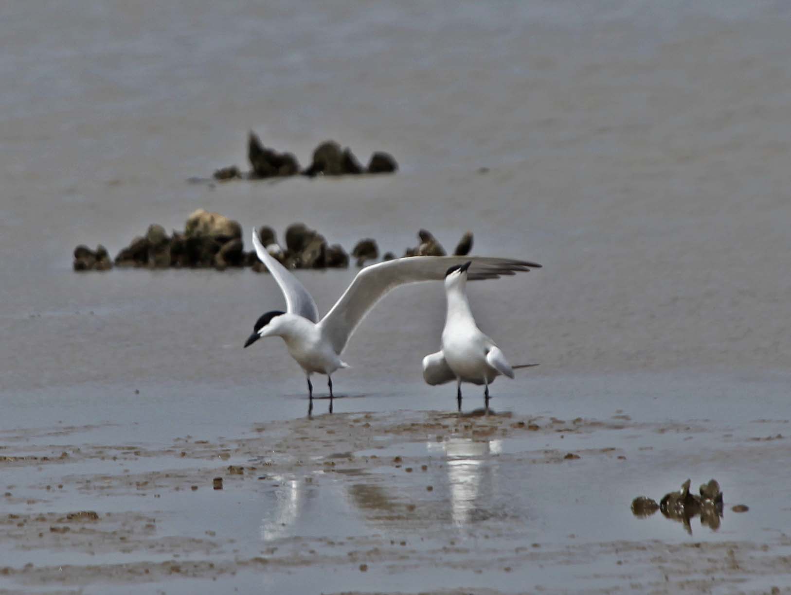 The Gull-billed Tern or the Common Gull-billed Tern breeds mostly on the coast or near lakes and river valleys in southern U.S. to northern Mexico, southern Europe, and Asia near the Caspian sea and the eastern China coast. They winter in Central America, South American coasts, coasts and rivers in Africa, and southern Australasia.