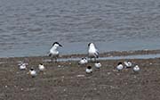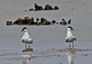Besides small fish, Gull-billed Terns also eat insects including grasshoppers, dragonflies, moths, grubs, siders, small reptiles, and frogs.