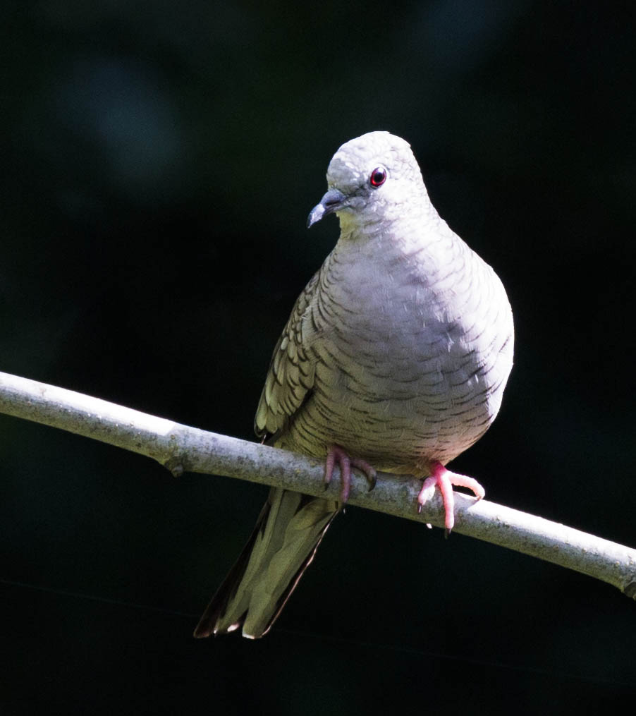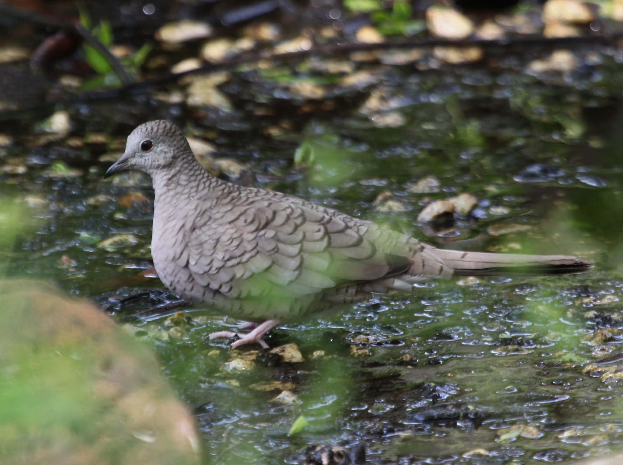 The Inca Dove is found in the North American southwest and Mexico through Central America to Costa Rica. Their feathers are unique and look like scales. They eat grass seed. During the winter, they huddle in a pyramid formation which can contain 12 birds.