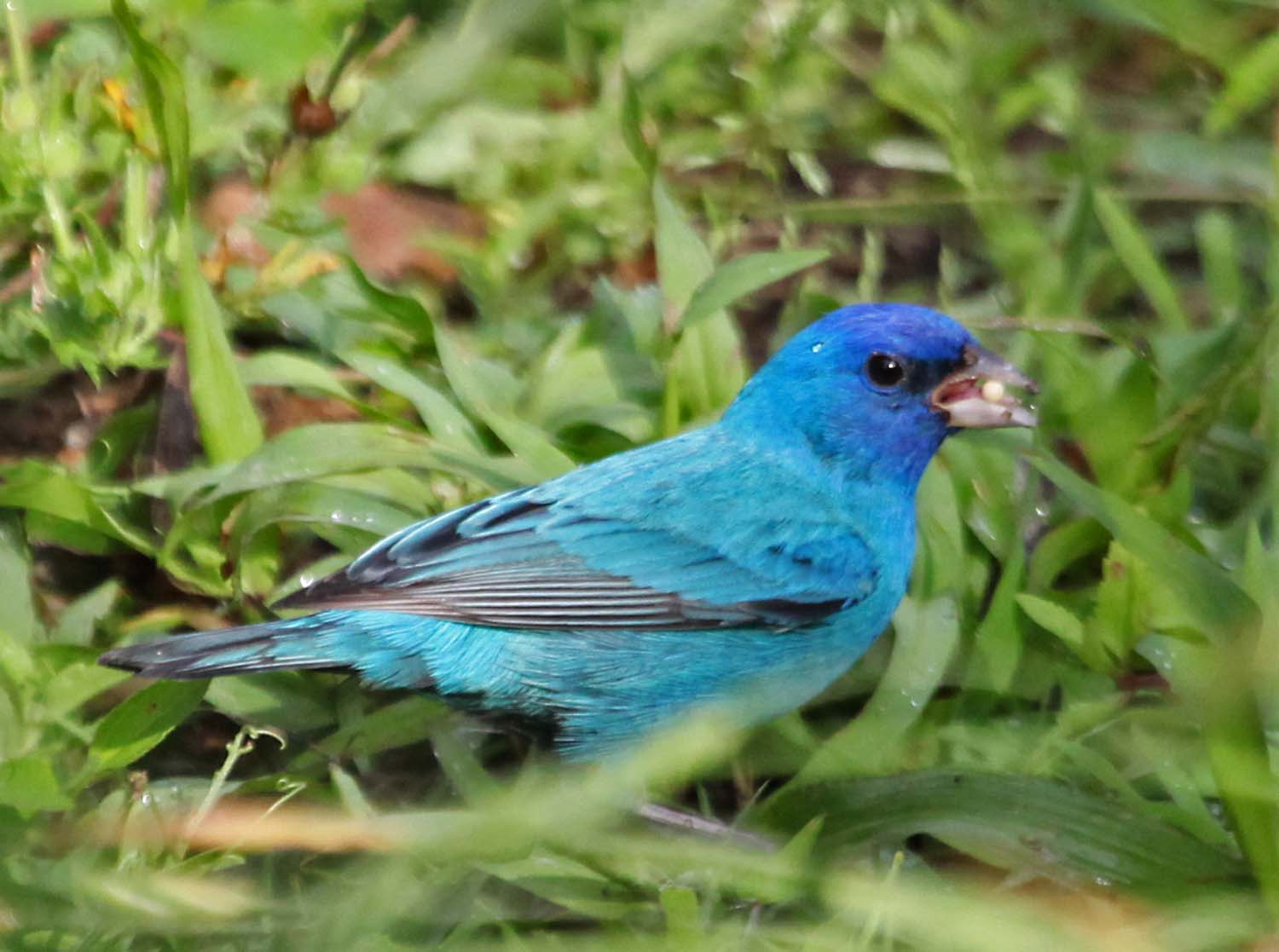 Note the tongue on this male Indigo Bunting