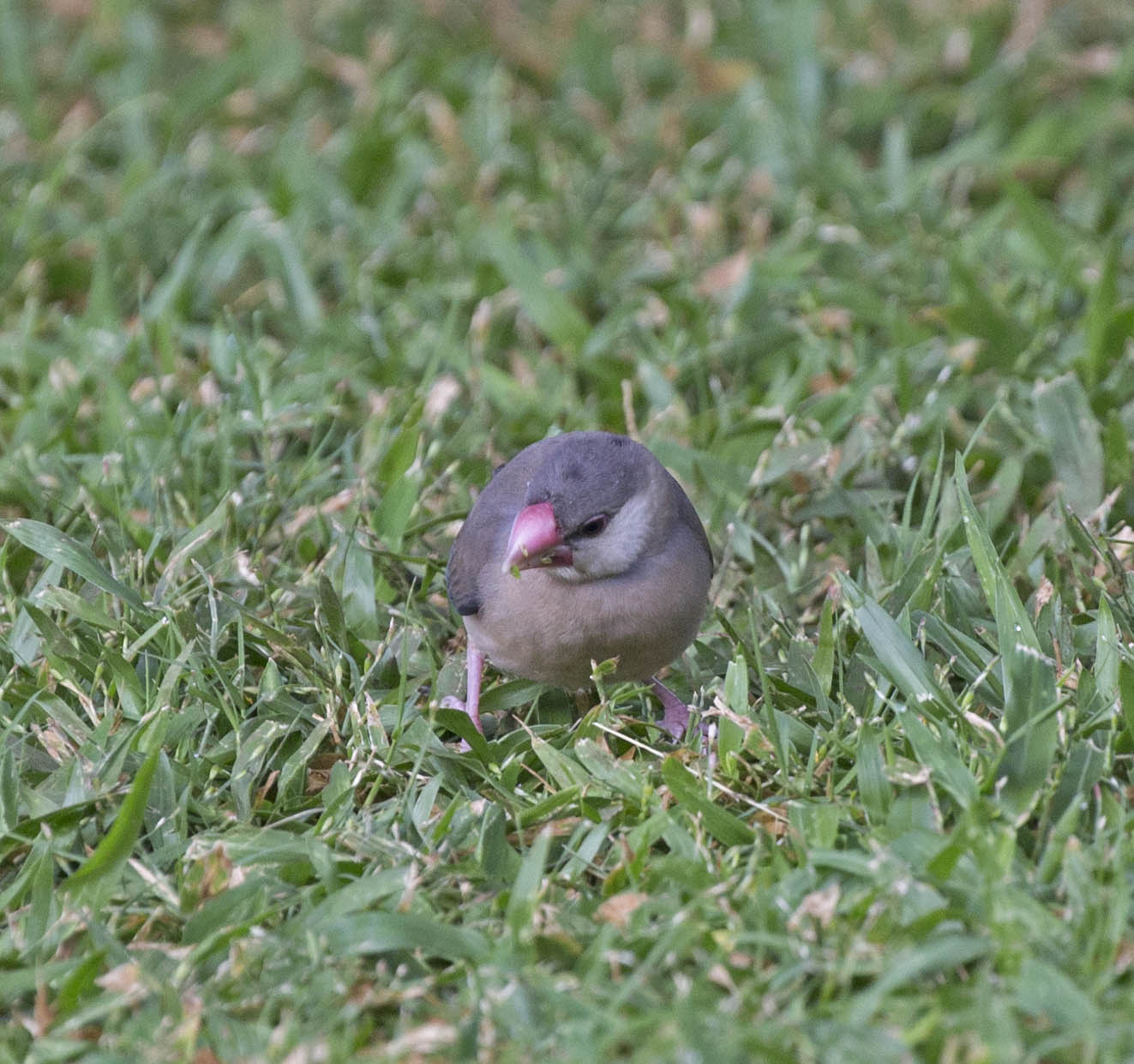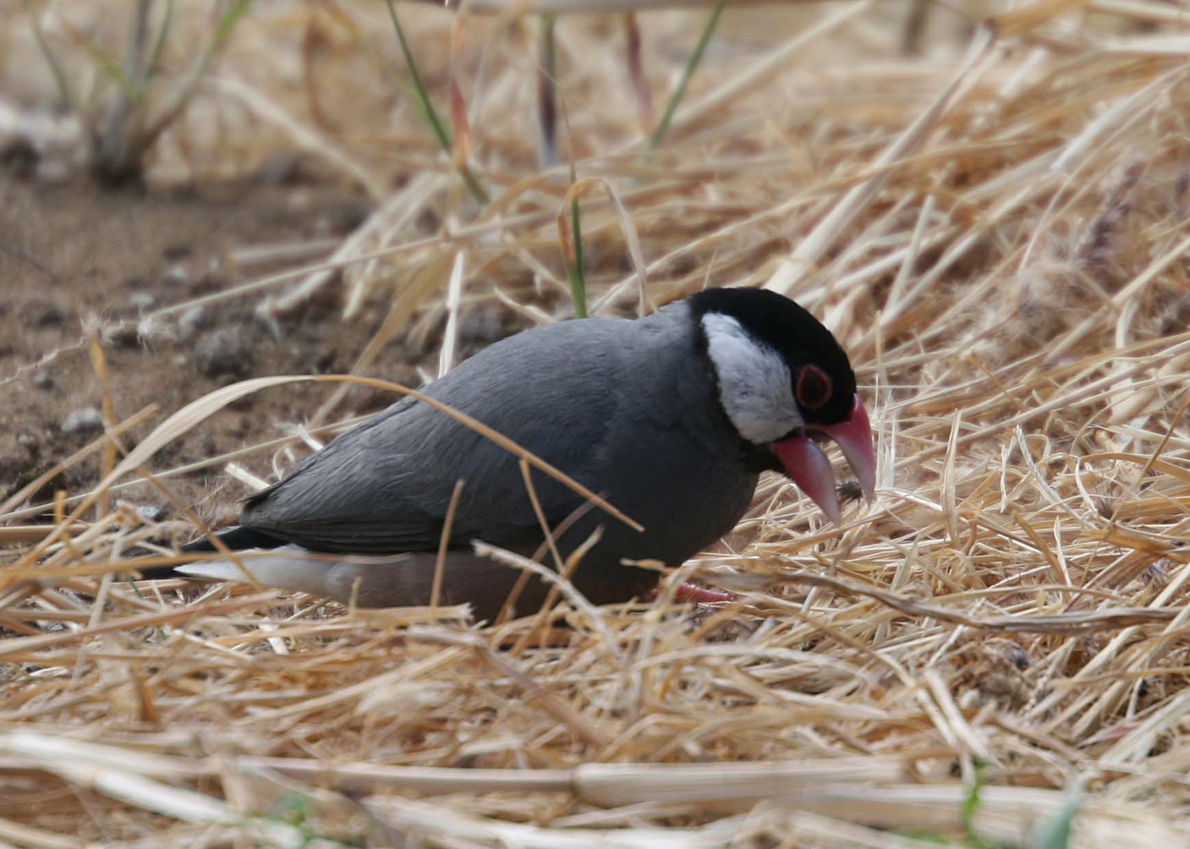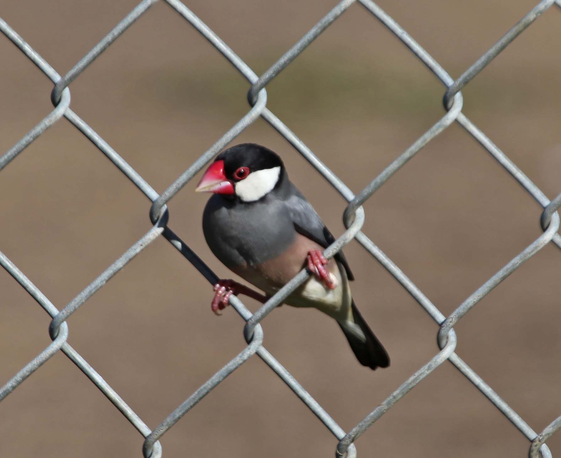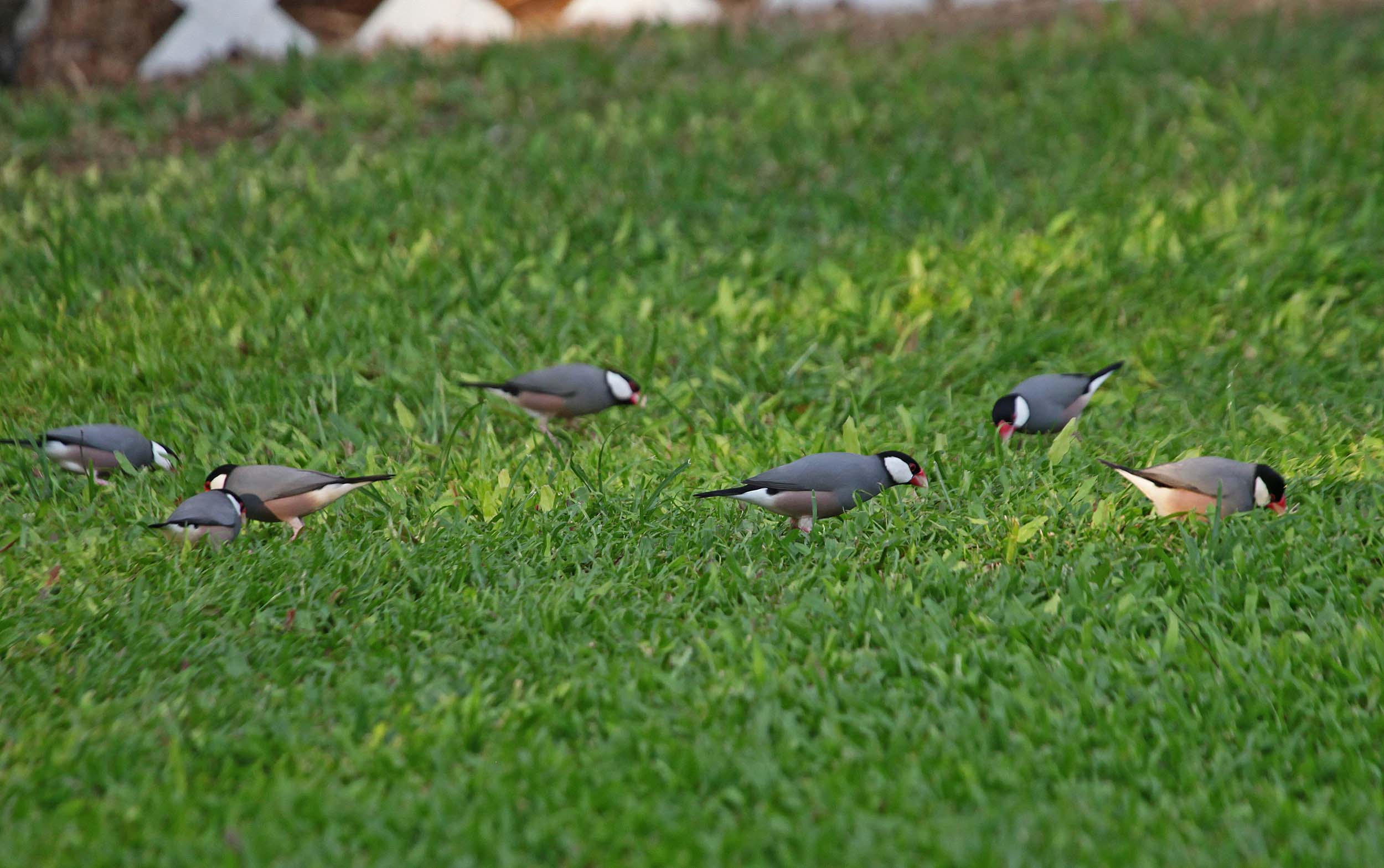The Java Sparrow is from Indonesia. This Sparrow has been introduced to other places, such as India, Hawaii, and Christmas Island, off the coast of Western Australia. They have a massive bill and their white cheeks are quite noticeable.