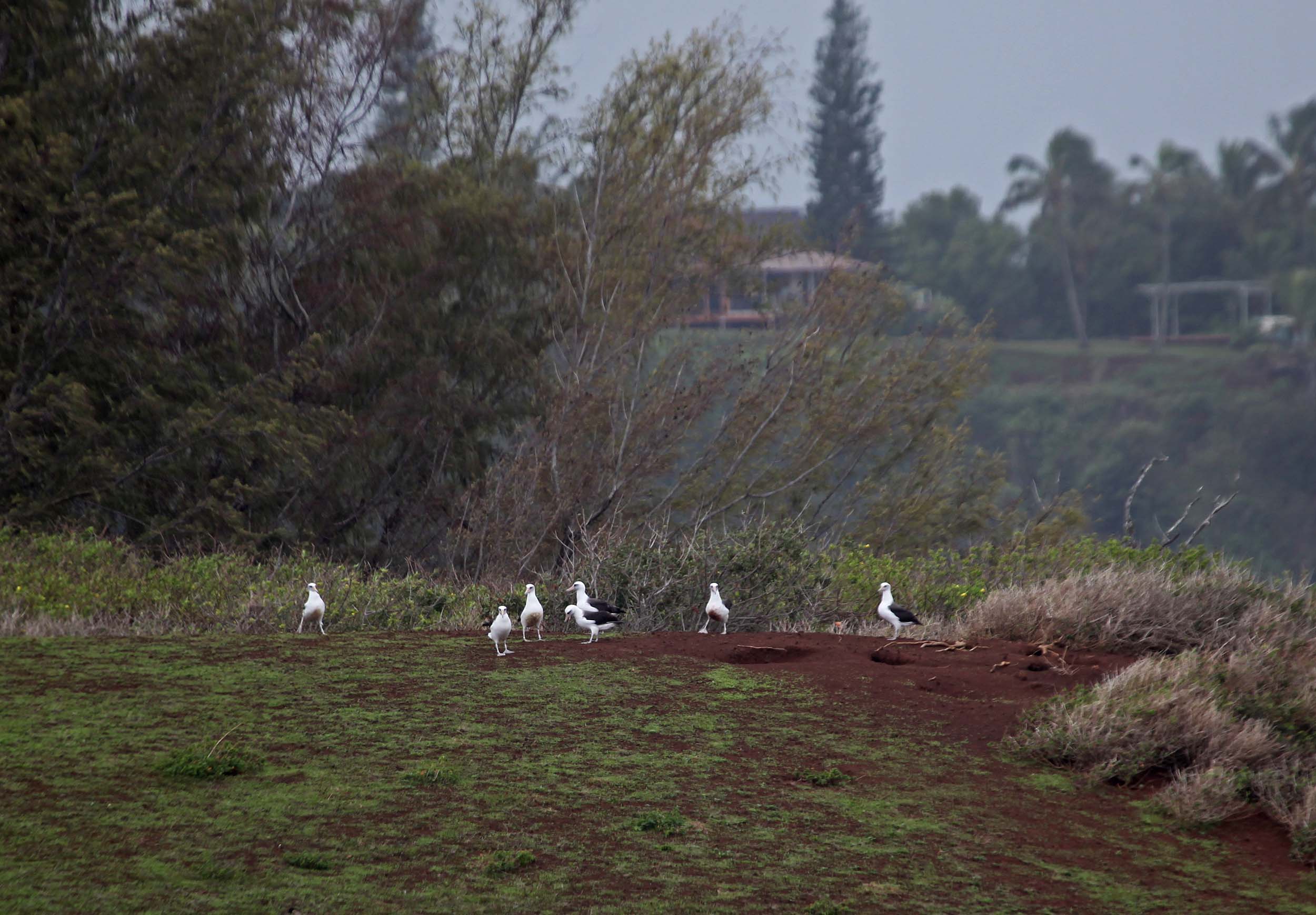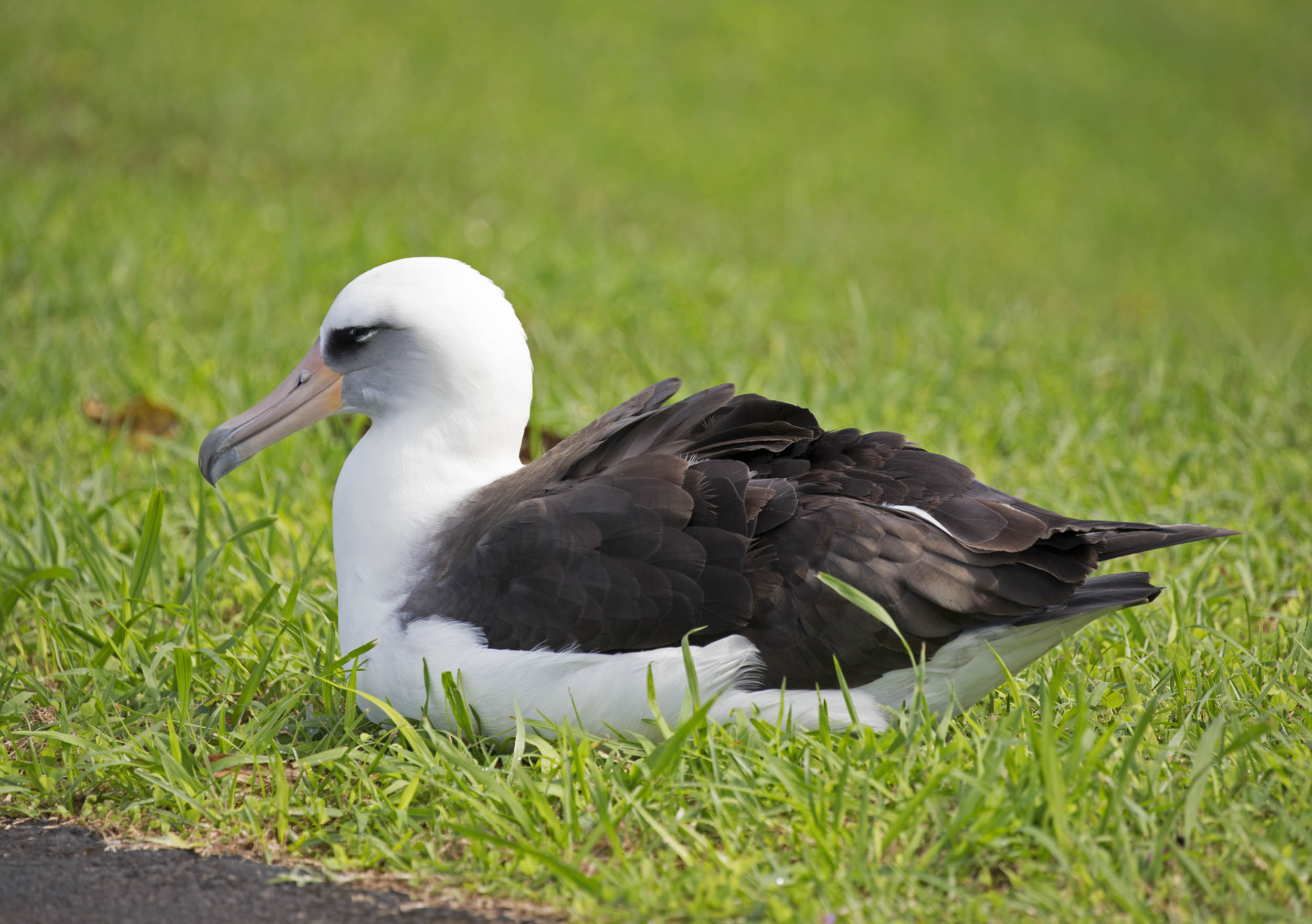 The Laysan Albatross is a large seabird that ranges across the North Pacific. It is the second most common seabird in the Hawaiian Islands. I saw quite a few of them at the Lighthouse on Kauai. Males are slightly larger than the females. They mostly eat molluscs but will also eat fish, crustaceans and other invertebrates.