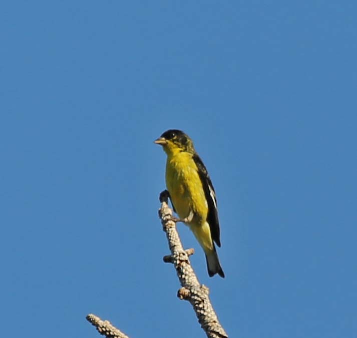 The Lesser-Texas Goldfinch is one of the two forms of the Lesser Goldfinch that are found mostly in the western part of the U.S. and Mexico. They are the smallest North American Goldfinch. The Texas variant has more black on its head and back. They feed mostly on tree buds and weed seeds. They are also common at bird feeders.