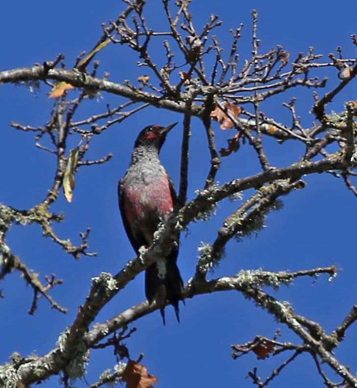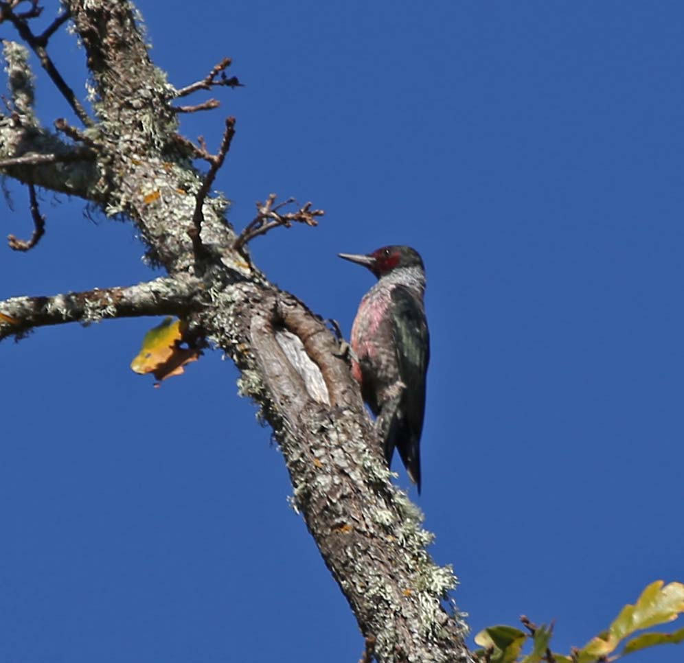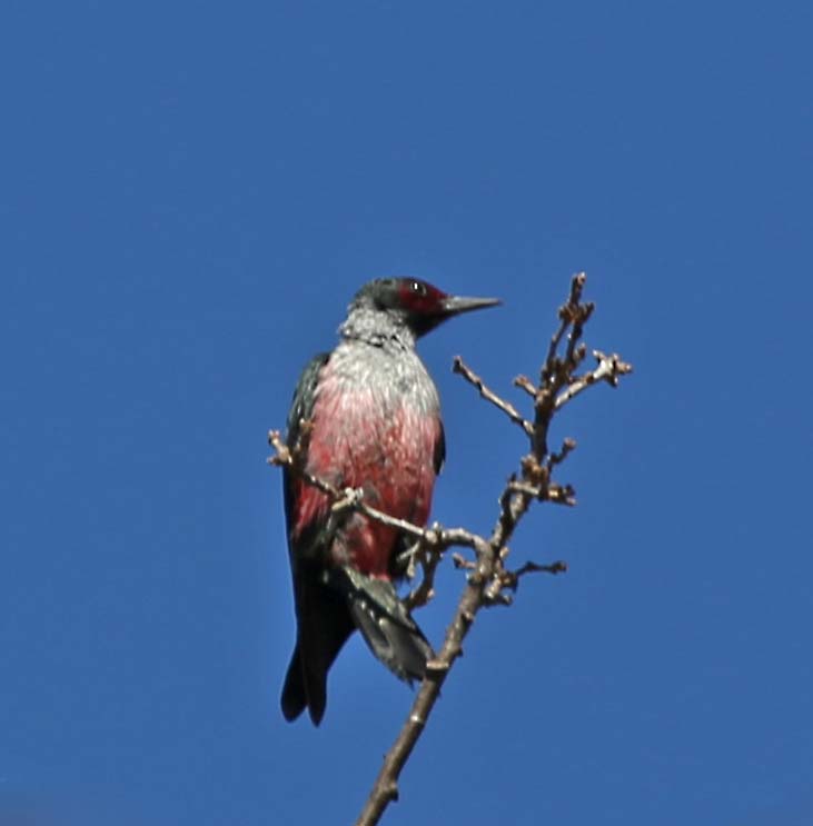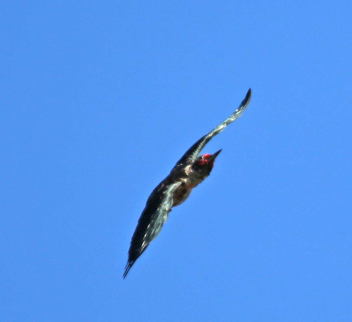 The Lewis's Woodpecker is found in western North America from southern Canada to norther Mexico. They are one of the largest American woodpeckers. Besides foraging for insects in trees, Lewis's Woodpeckers will also catch insects in the air while flying. Besides insects, they also feed on berries and nuts.