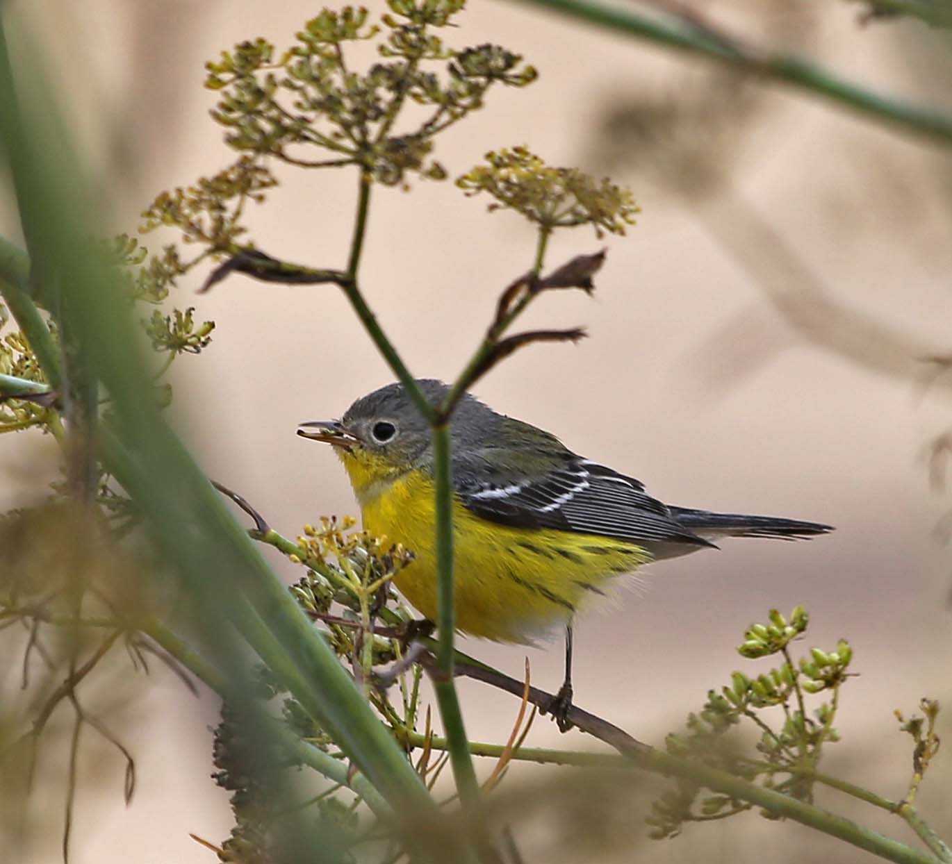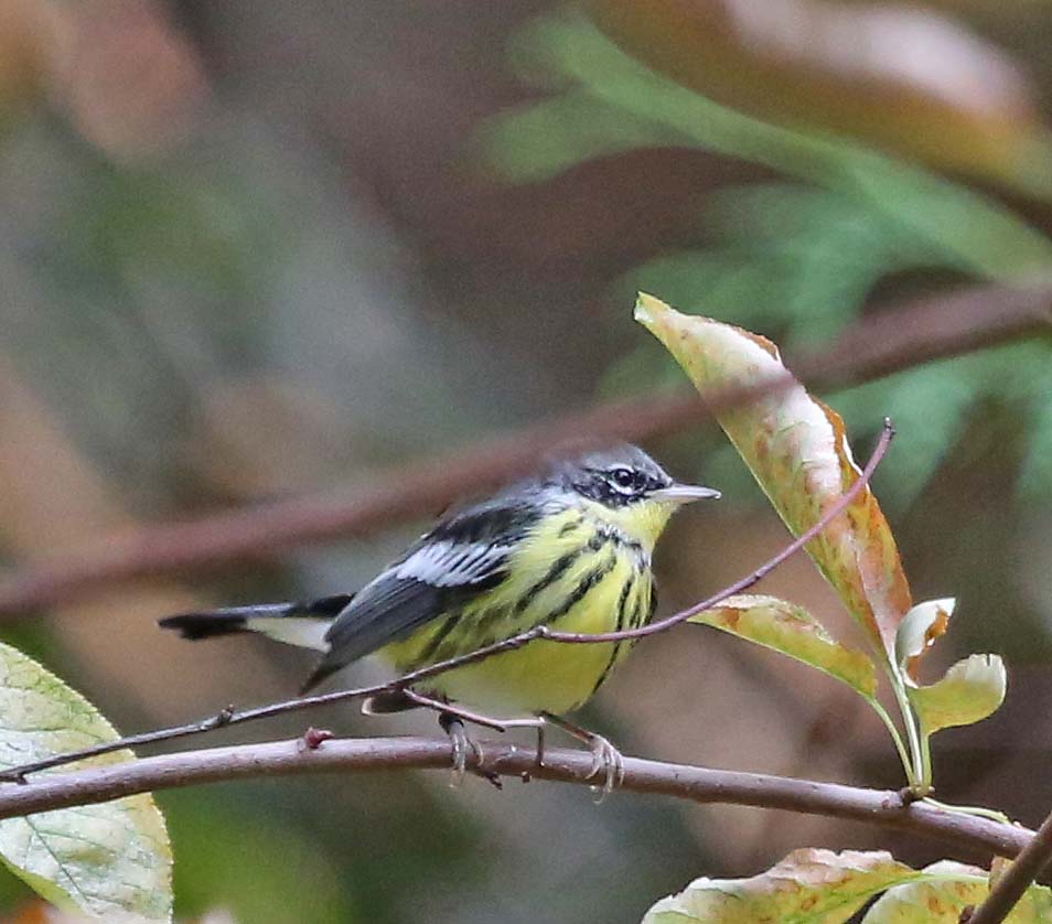 The Magnolia Warbler is a small warbler that breeds in northeastern U.S. and Canada and summers in Mexico and the Caribbean. The 1st year warbler shown below was a rare visitor to the San Francisco Bay Area.