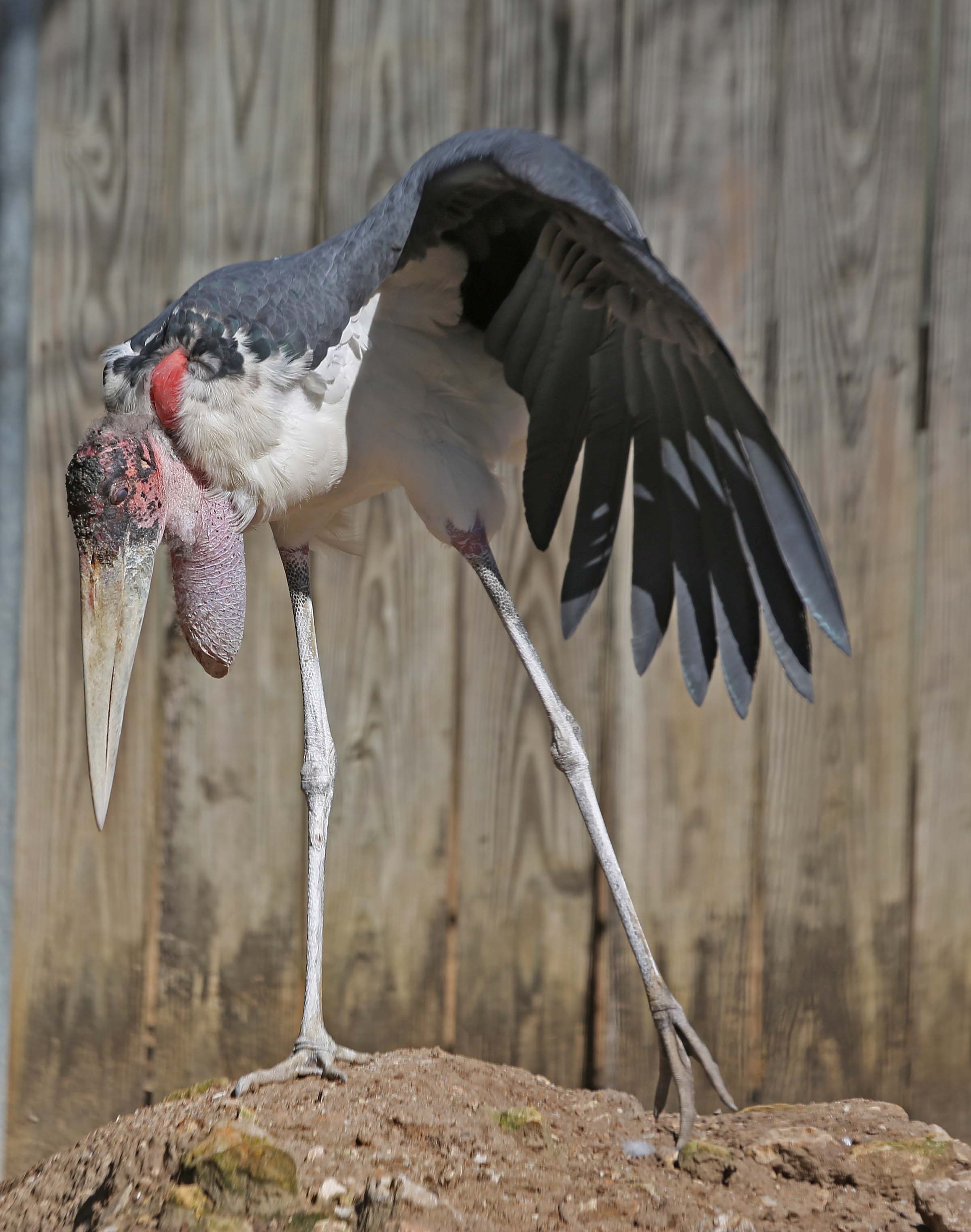 Marabou storks molt their feather sequentially, continuously and slowly.