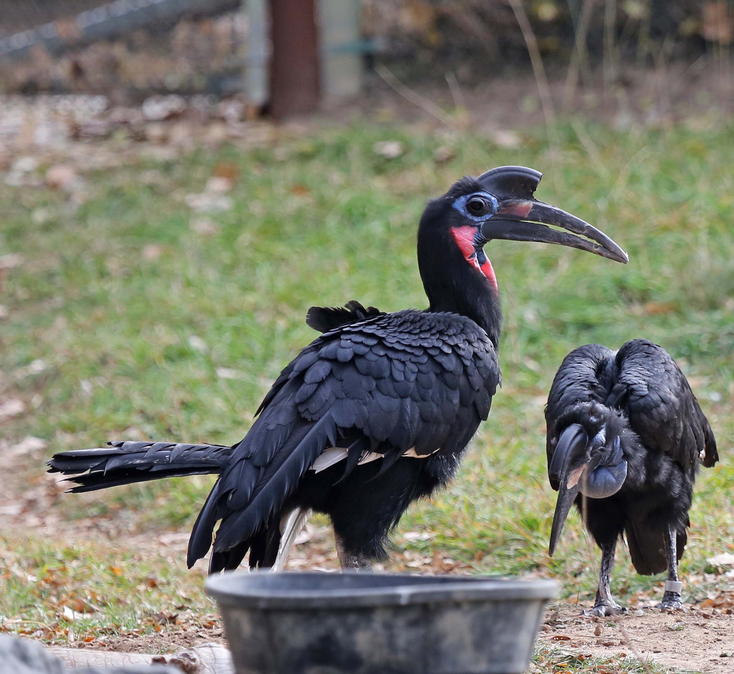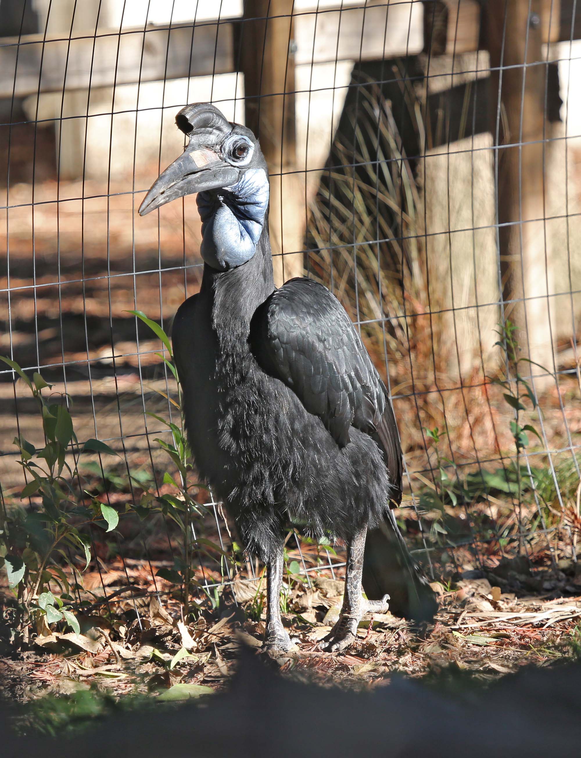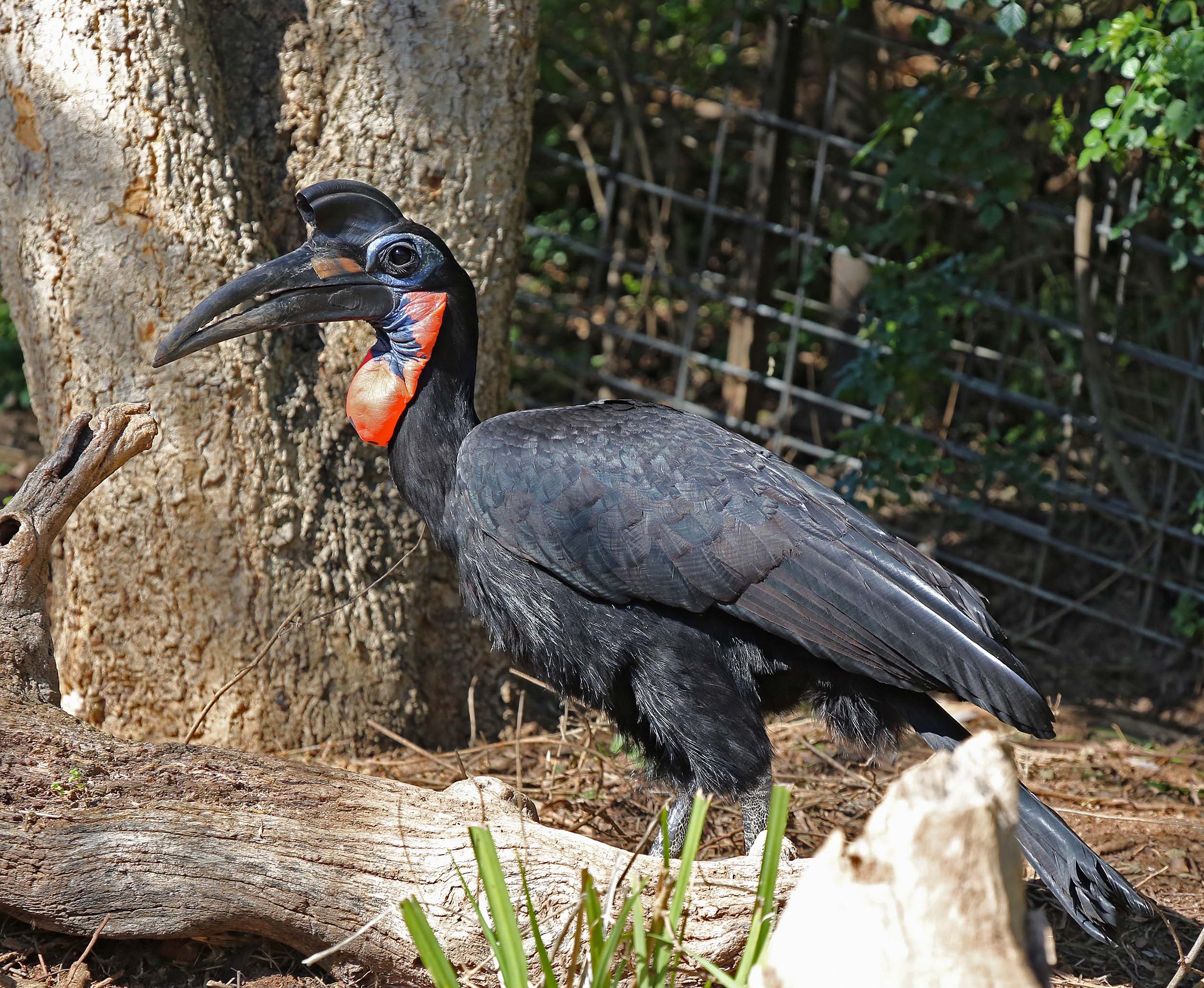 The Northern Ground-hornbill is also known as the Abyssinian Ground-hornbill. There are two species of Ground-hornbills, the other is the Southern Ground Hornbill. Northern Ground-hornbill males have red throat pouches, the females blue. Their long lashes are useful for keeping blowing sand out of their eyes in Africa.