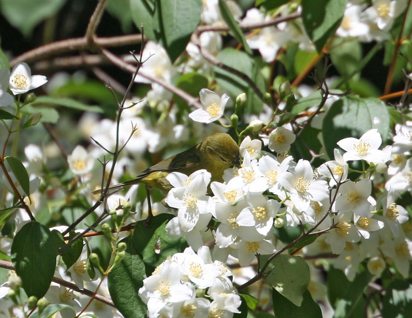 The Orange-crowned Warbler is a small passerine that breeds in Alaska, across much of Canada, and the western U.S. Winters are spend in the U.S. southern States, Mexico and Central America. They eat insects, berries and nectar.