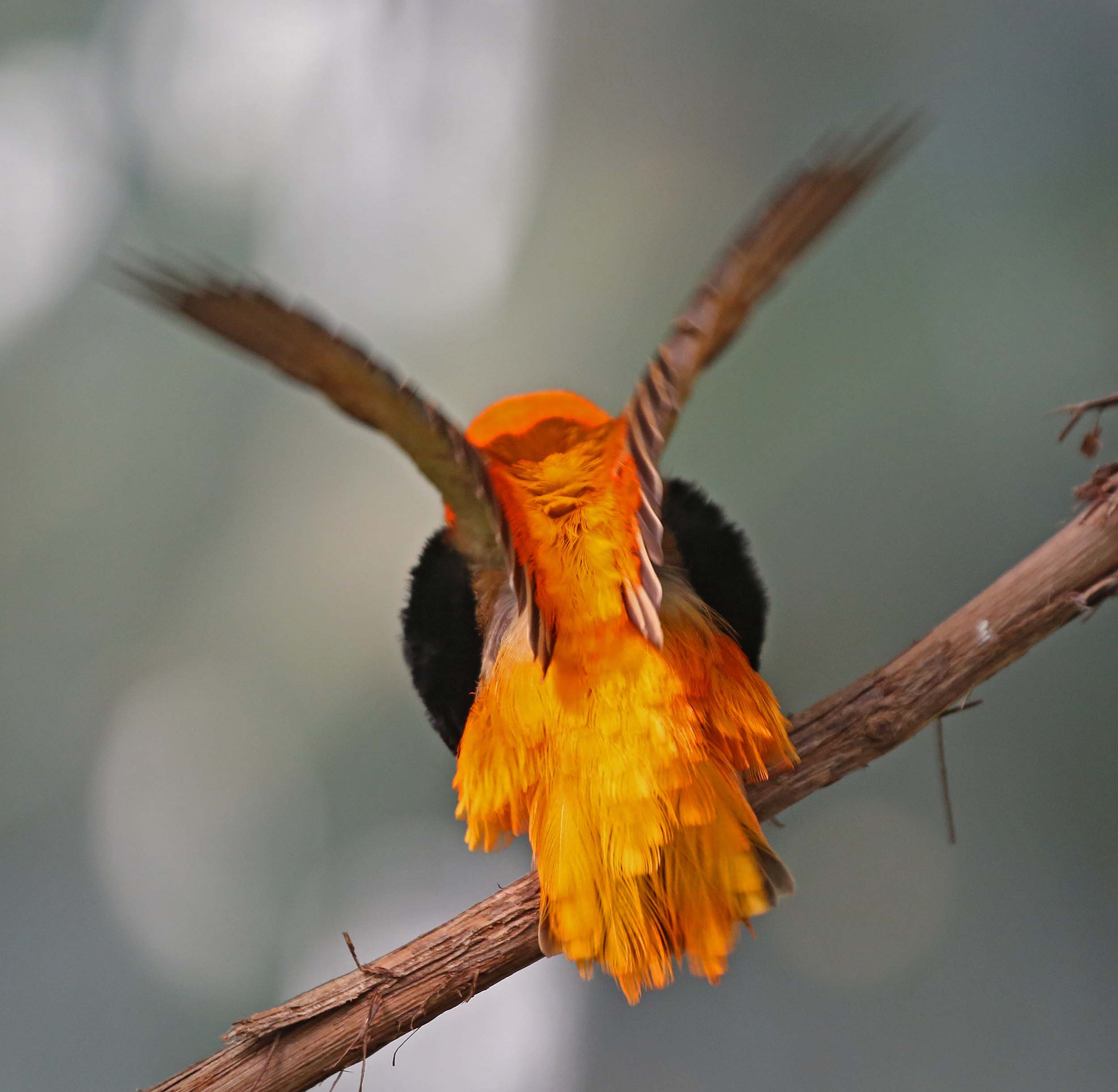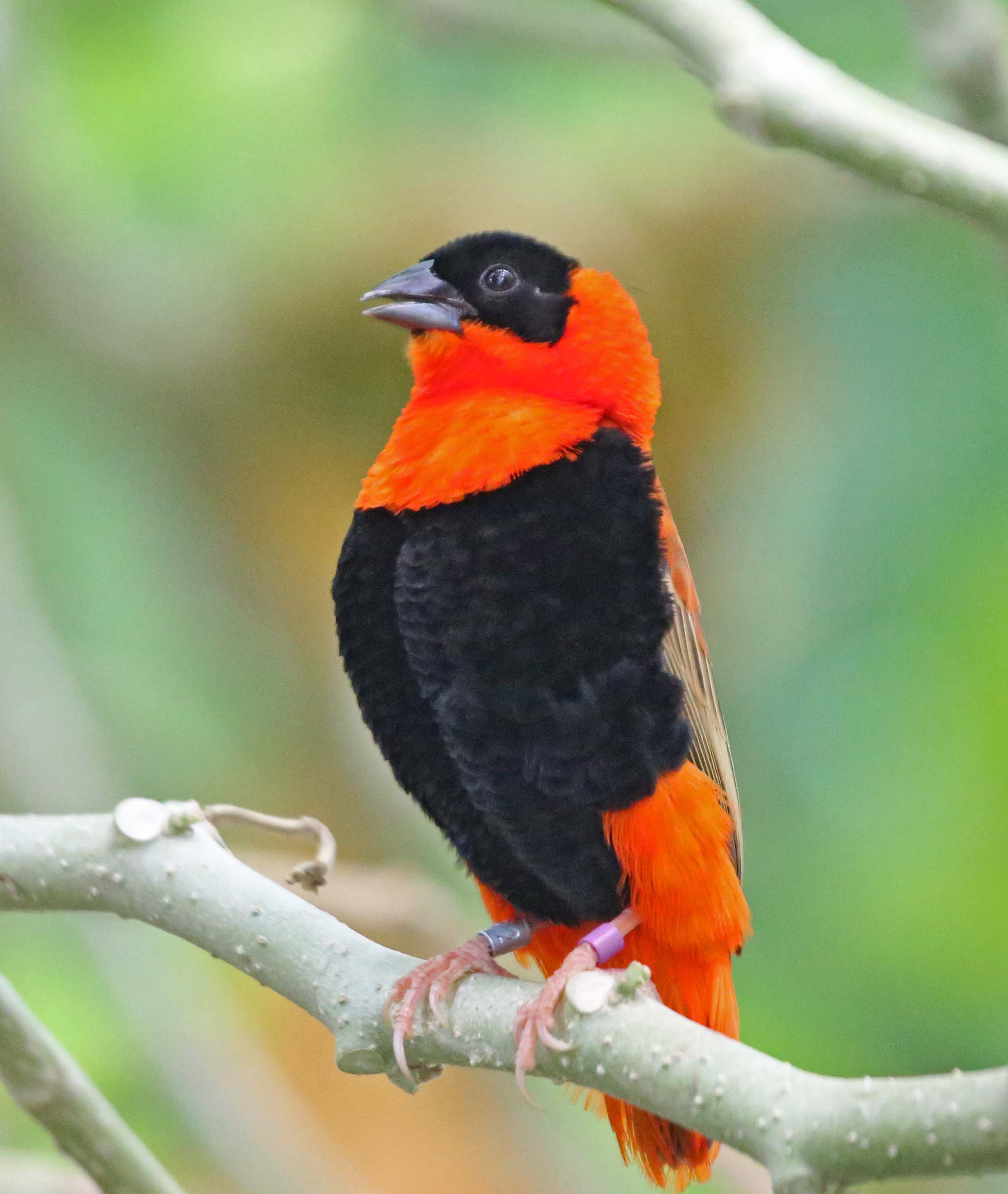 The Orange Bishop or the Northern Red Bishop is a Weaver that was formally regarded as a subspecies of the Southern Red Bishop. They are now considered two separate species. The Orange Bishop is found in the southern half of Africa.