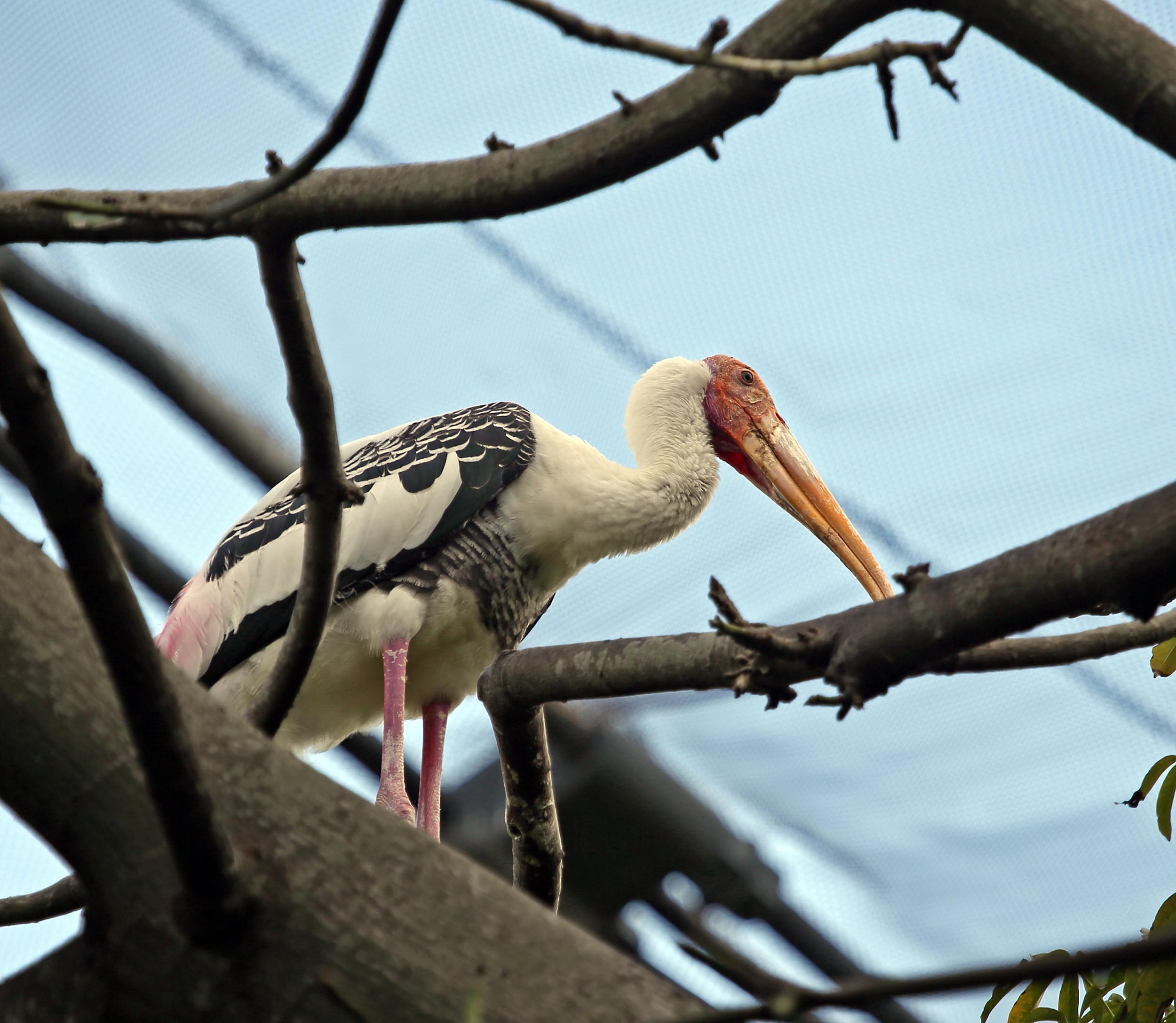 The Painted Stork is found in the wetlands of the Indian subcontinent and extending into Southeast Asia. They colonially nest in trees. They mostly eat fish but will also eat frogs, reptiles, crustaceans, and insects.