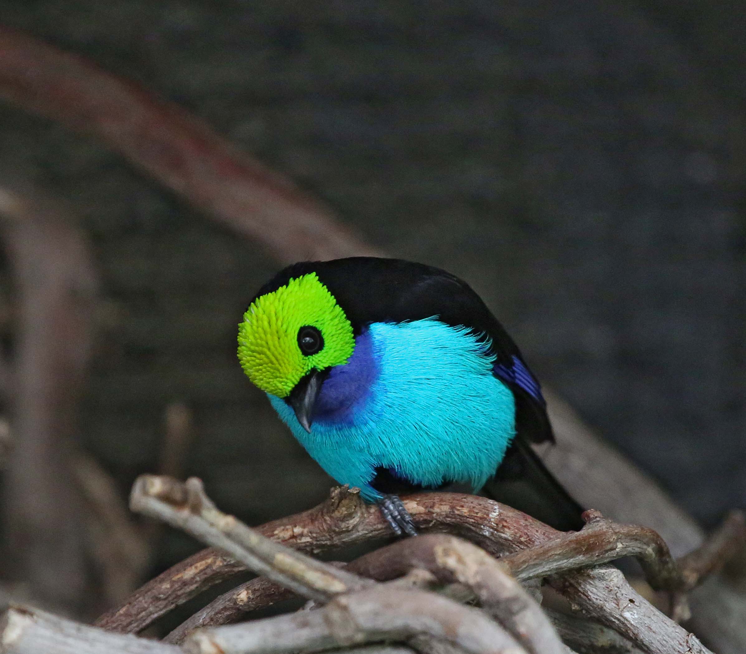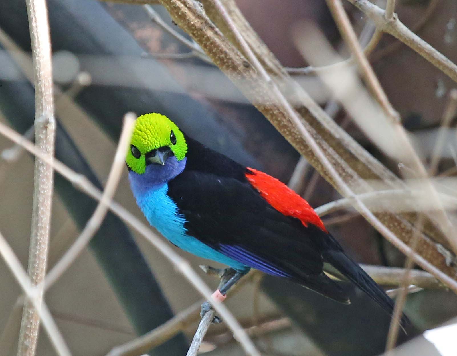 Habitat and Range: Paradise Tanagers are found throughout most of the South American Amazon basin and prefer low-lying forests and second-growth woodland at the forest edge, shaded plantations, and clearings with scattered trees.