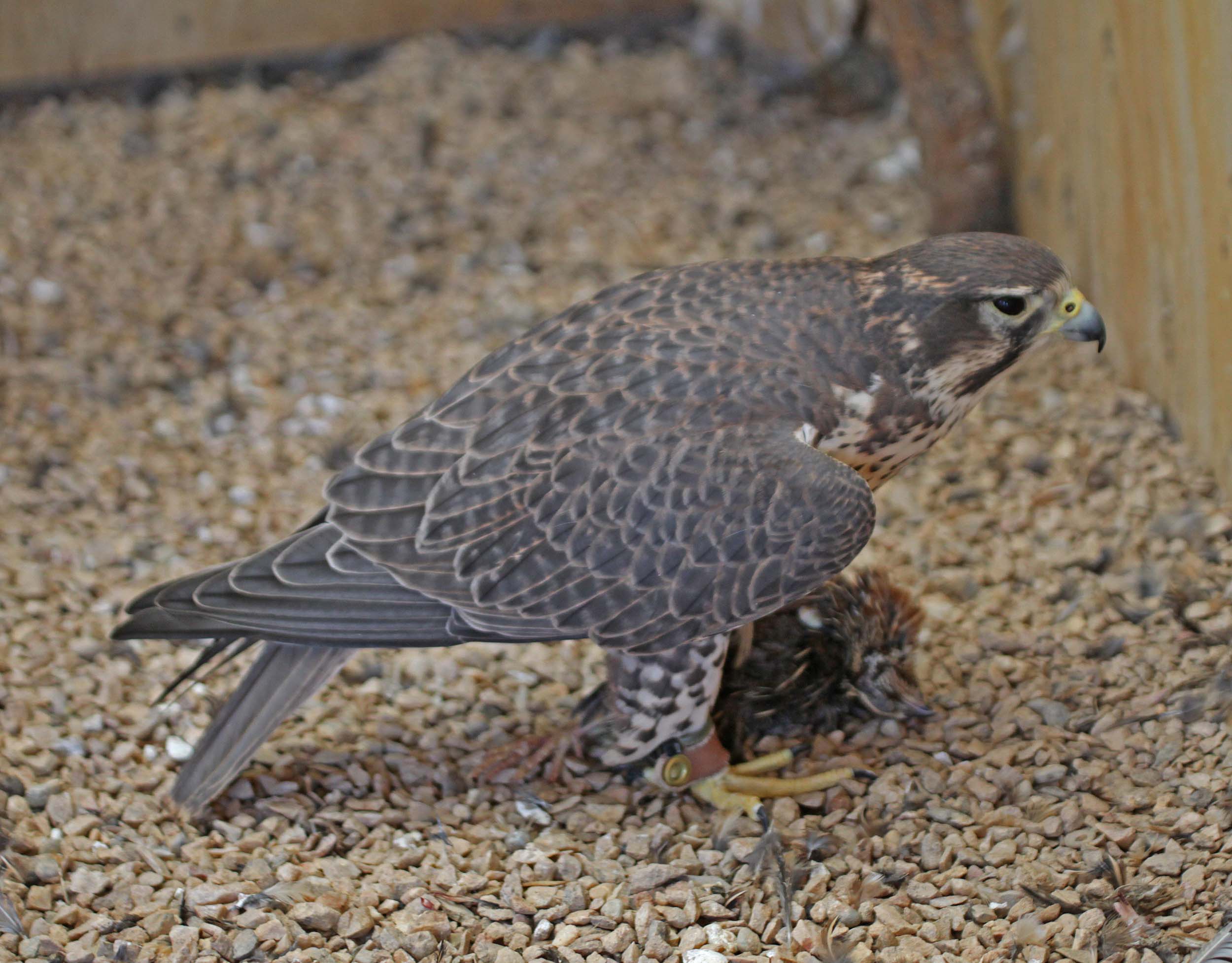 The Prairie Falcon is found in the western half of the U.S. and into Canada and Mexico. They prefer open arid country and high desert. Major prey includes ground squirrels, birds, lizards and insects.