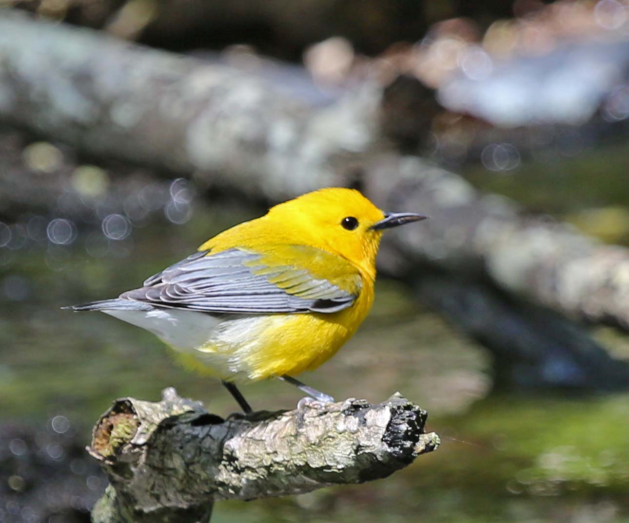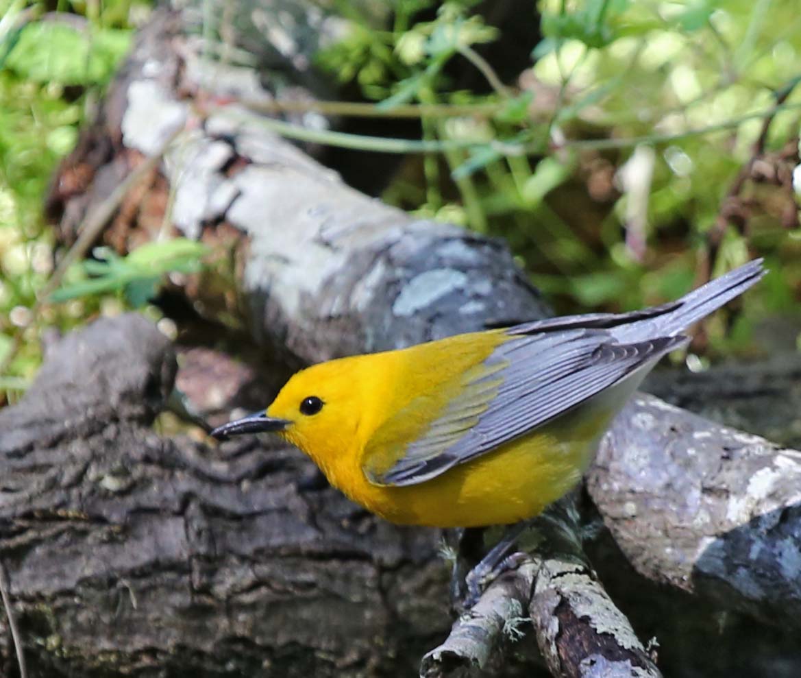 The Prothonotary Warbler is a beautiful yellow warbler that breeds in swamps in the eastern U.S. They winter in Mexico, Central America, and northern South America. One of the interesting facts about the Prothonotary Warbler is that the male often builds several incomplete and unused nests while the female builds the used one. Their nests are parasitized by the Brown-headed Cowbird. They consume insects and snails.