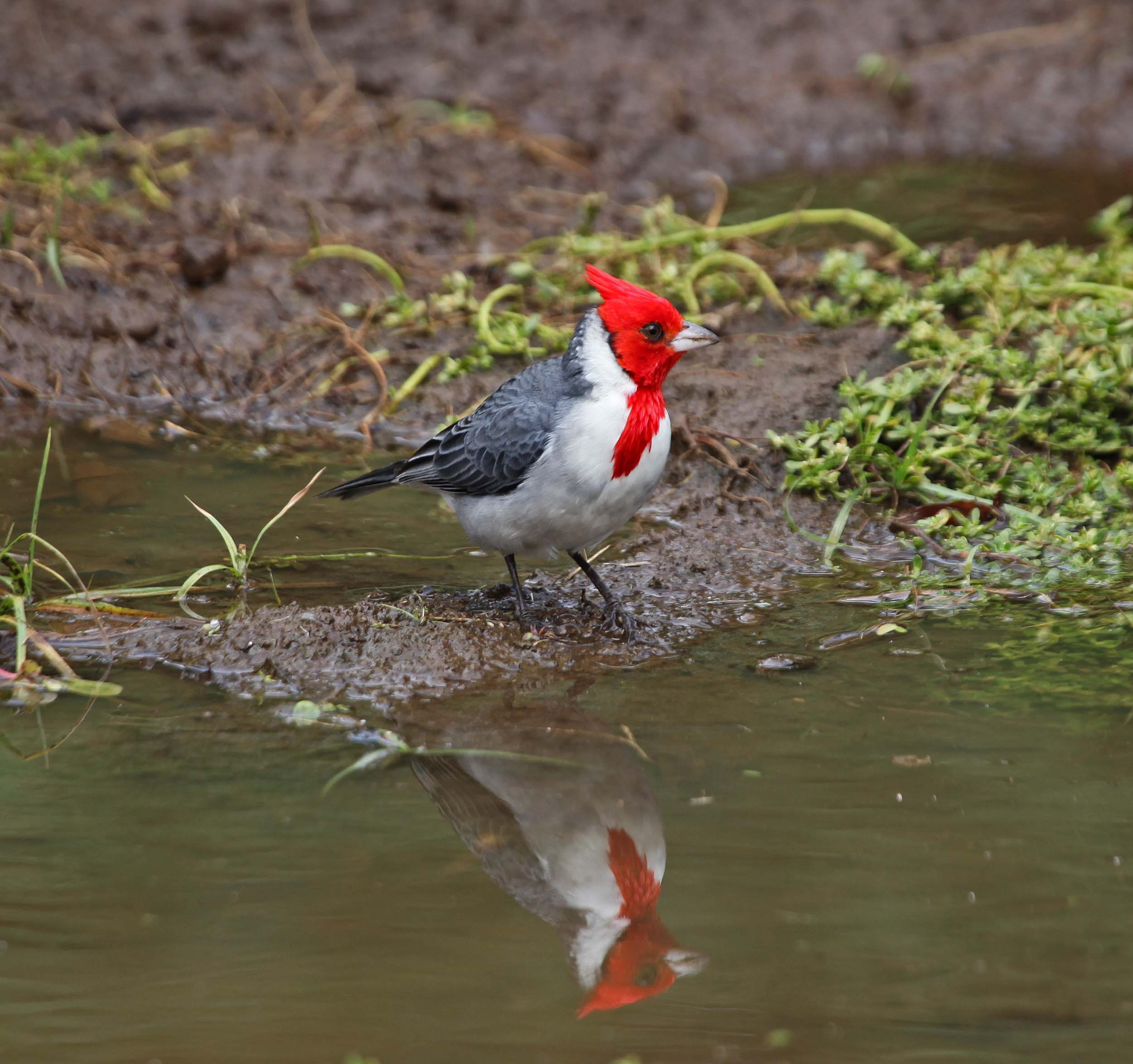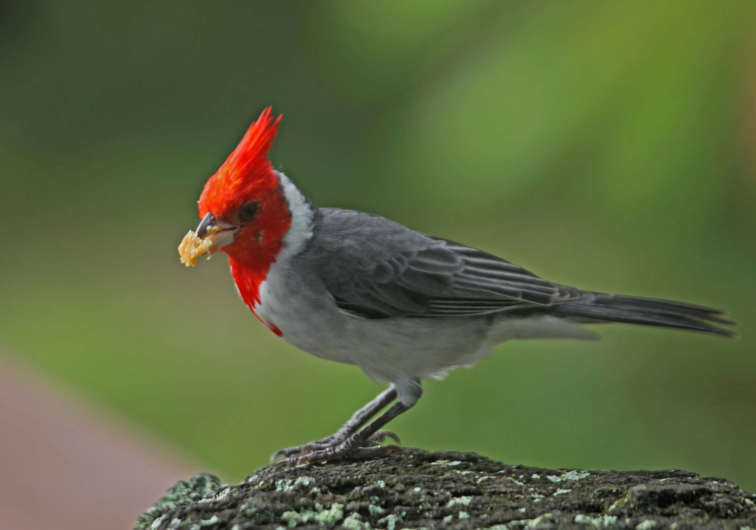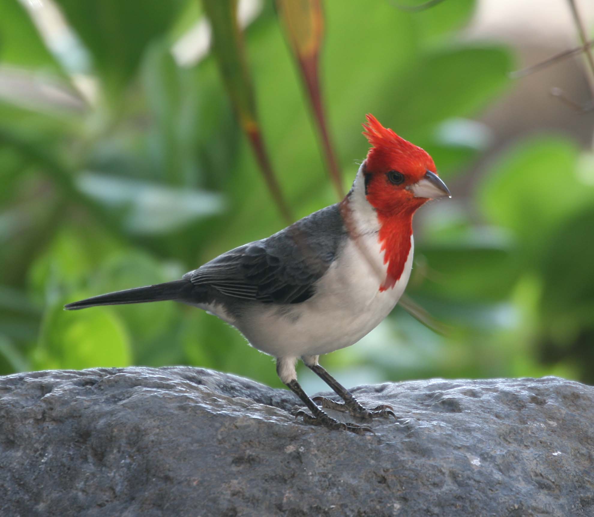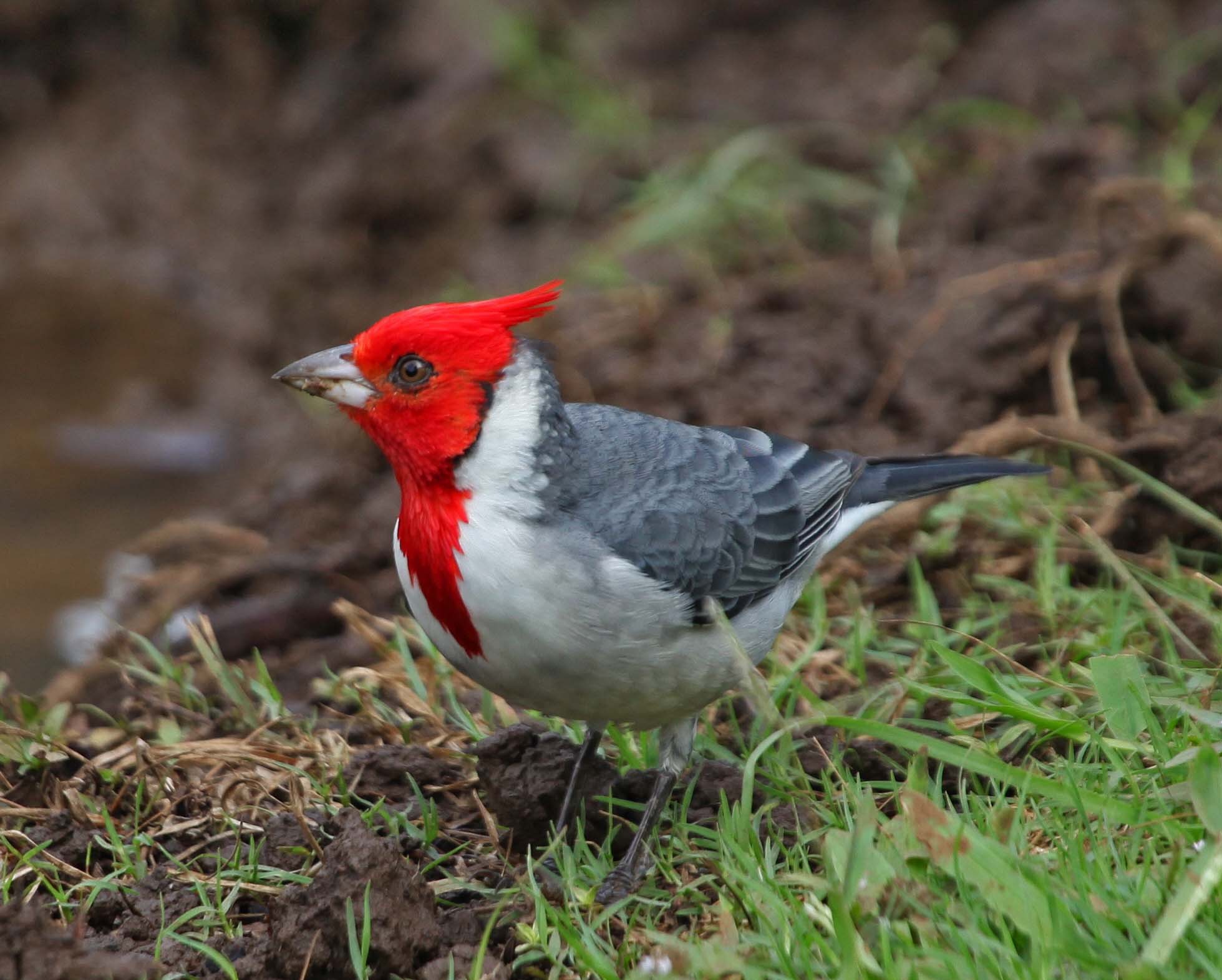 The Red-crested Cardinal is also known as the Brazilian Cardinal. It was imported to the Hawaiian Islands and I have seen it on both Oahu and Kauai. They were imported from South America where they are found in Brazil, Bolivia, Paraguay, Argentina and Uruguay. They eat seeds, plant matter, insects and fruit.