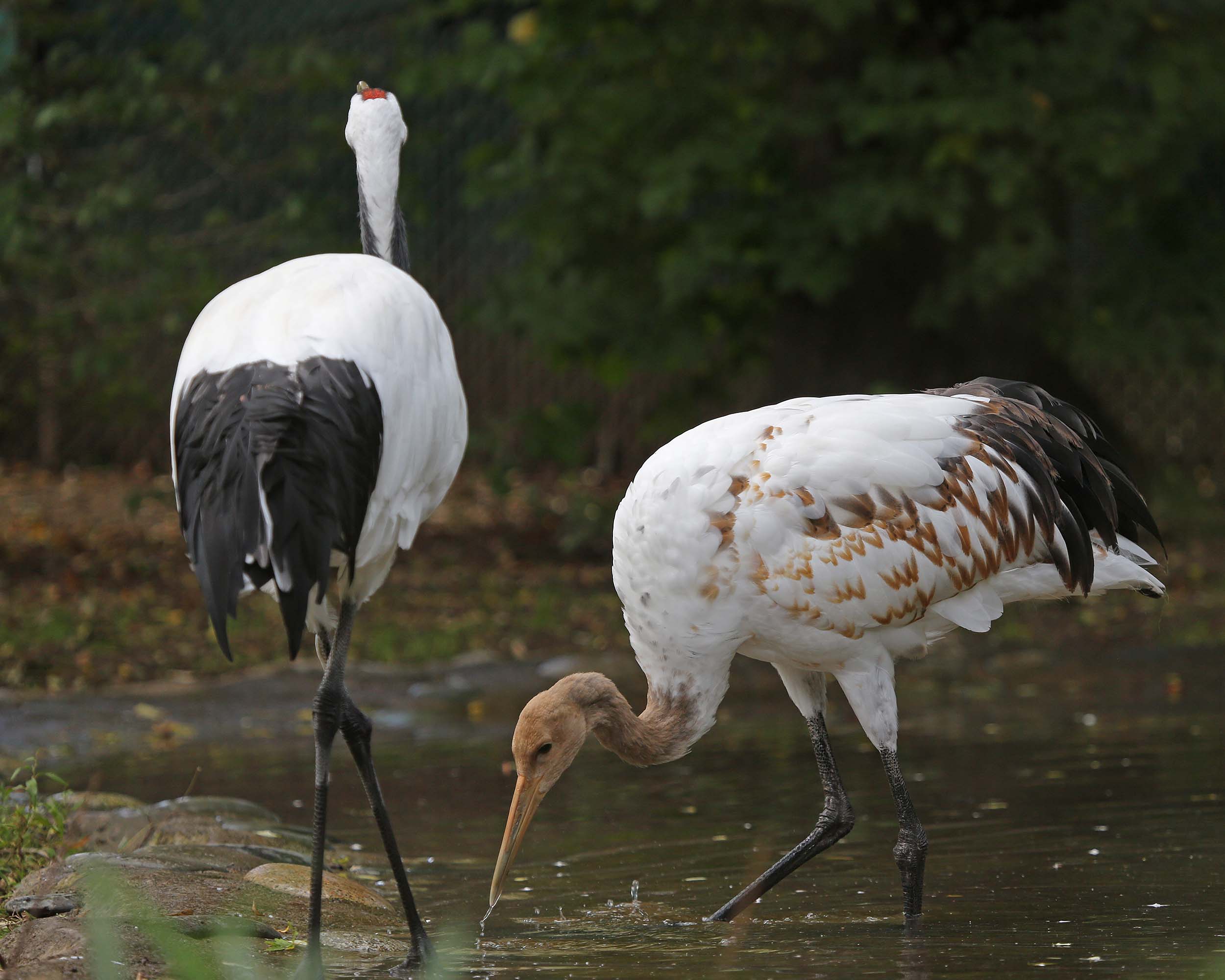 Red-crowned Cranes have an elaborate courtship dance in which they