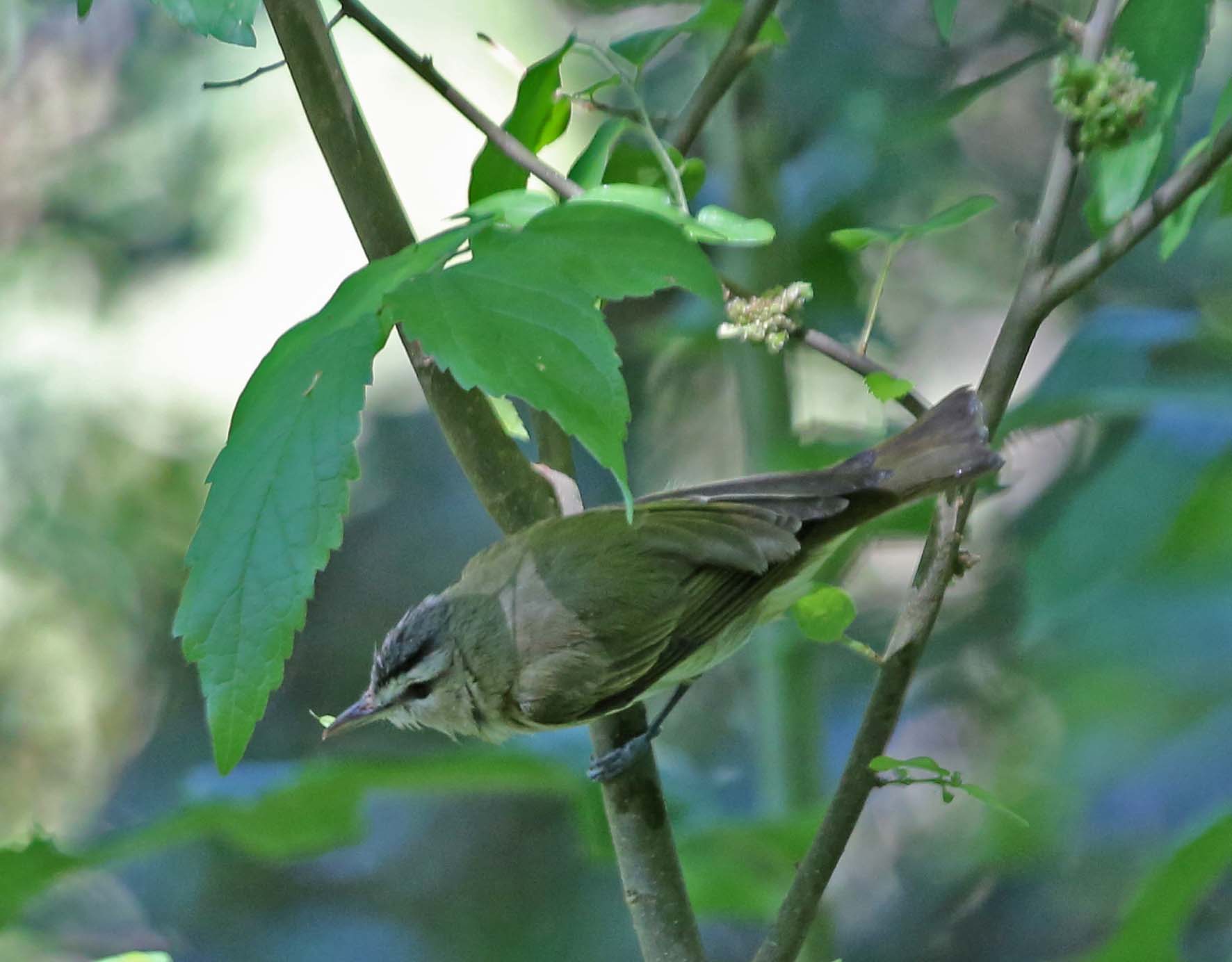 The Red-eyed Vireo breeds in Canada, the eastern and northwestern U.S. and parts of South America. North American birds winter in South America. They eat insects from tree foliage. They favor caterpillars and aphids.