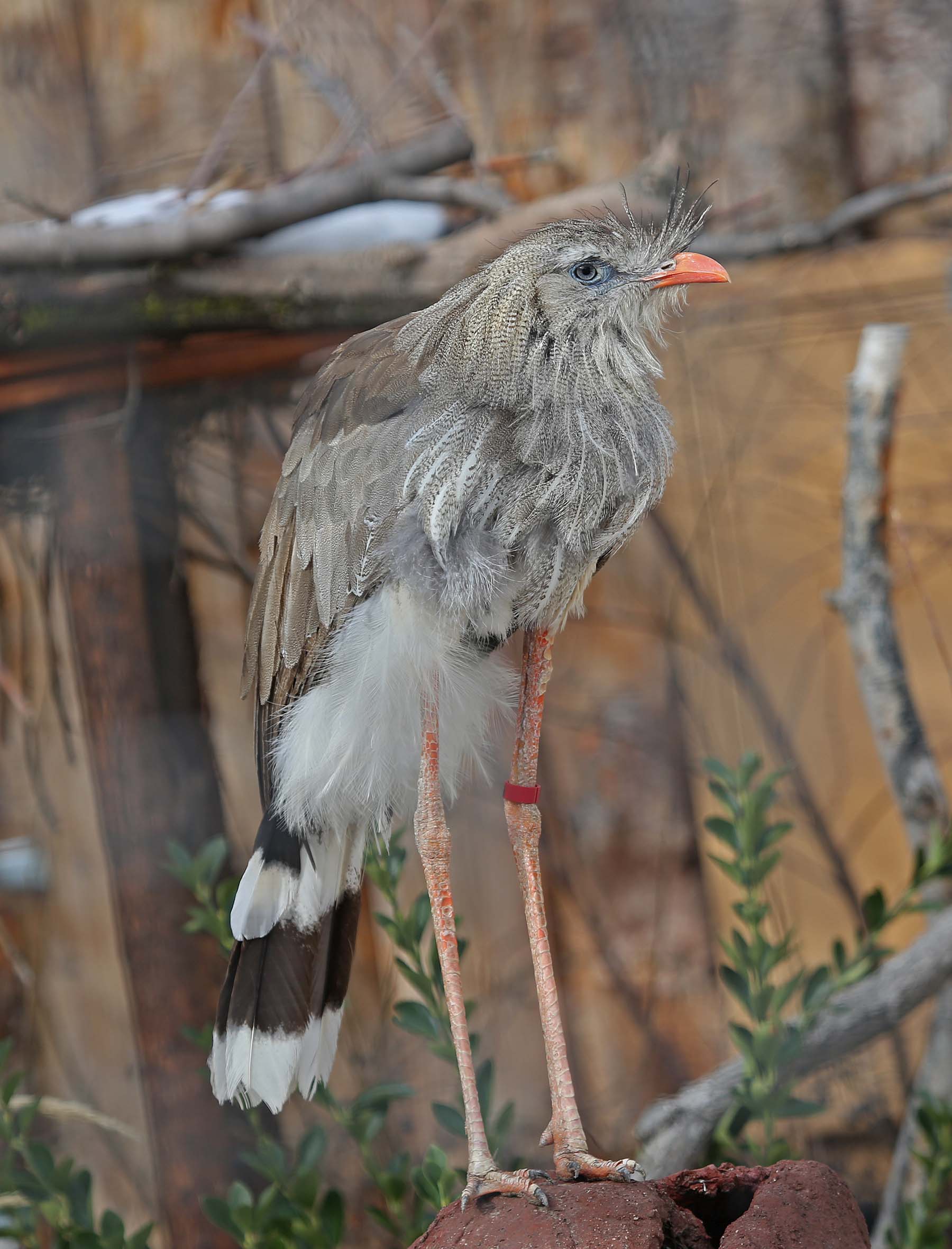 The Red-legged Seriema is found in South America. They were originally placed in the 'Gruiformes' order but they have been moved to a new order, 'Cariamiformes'.