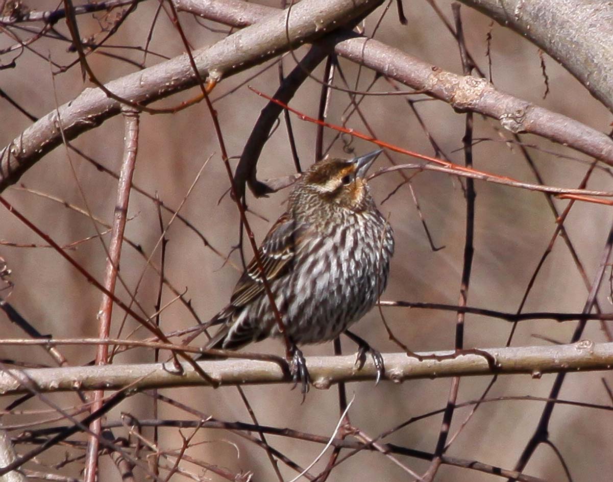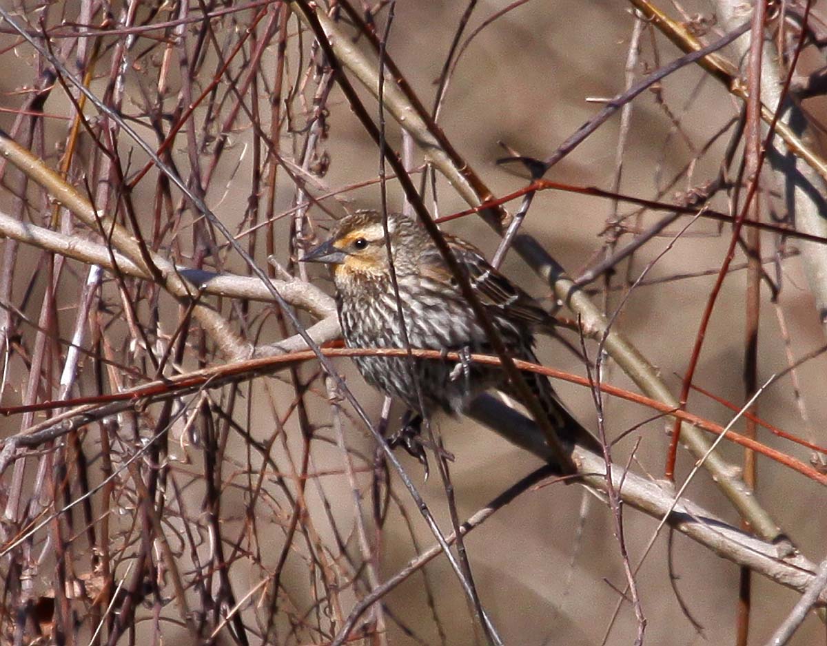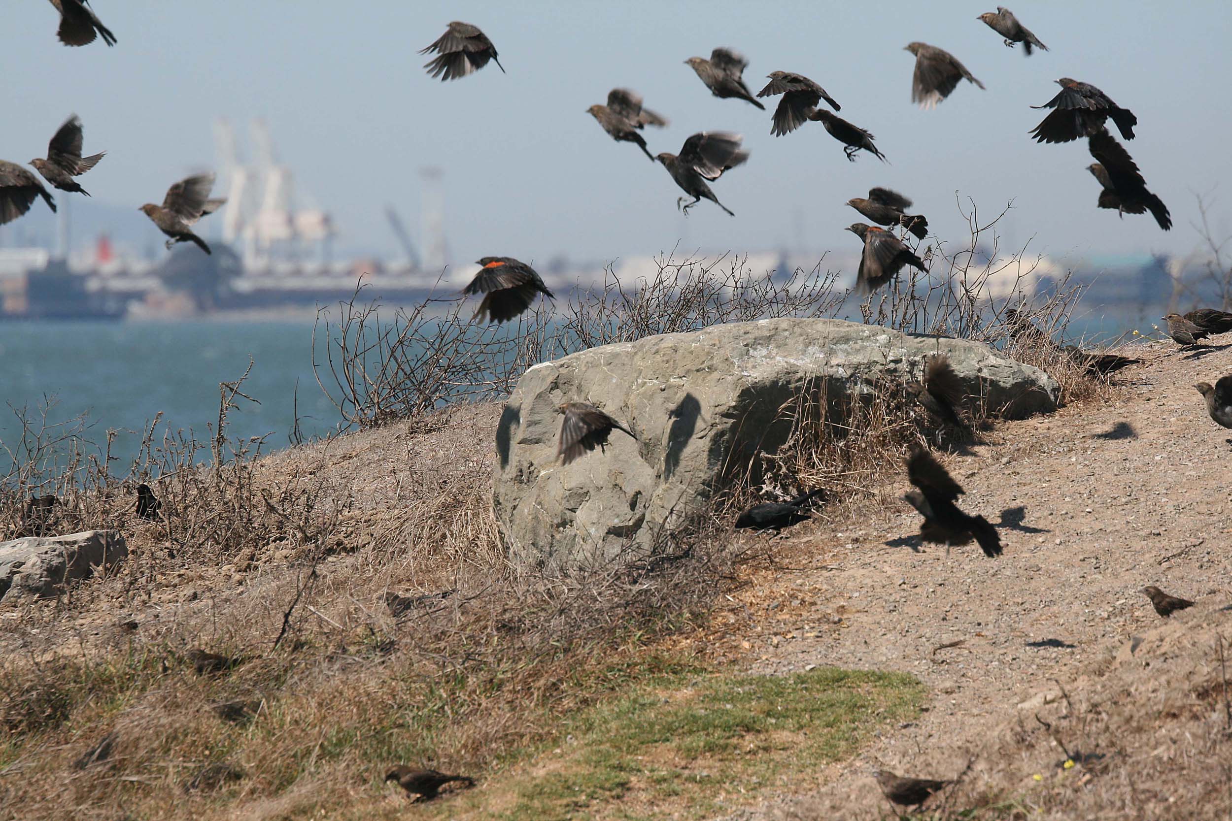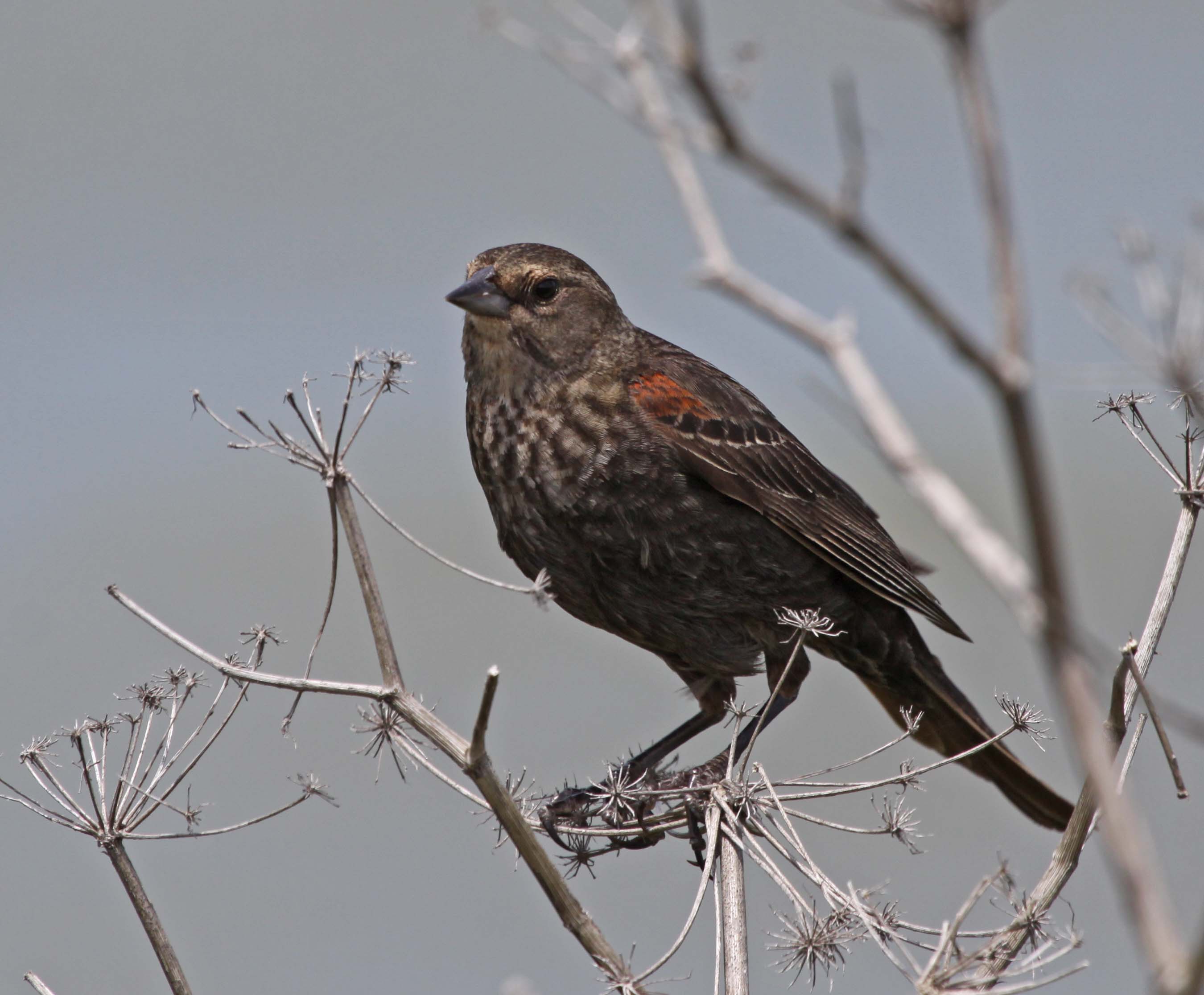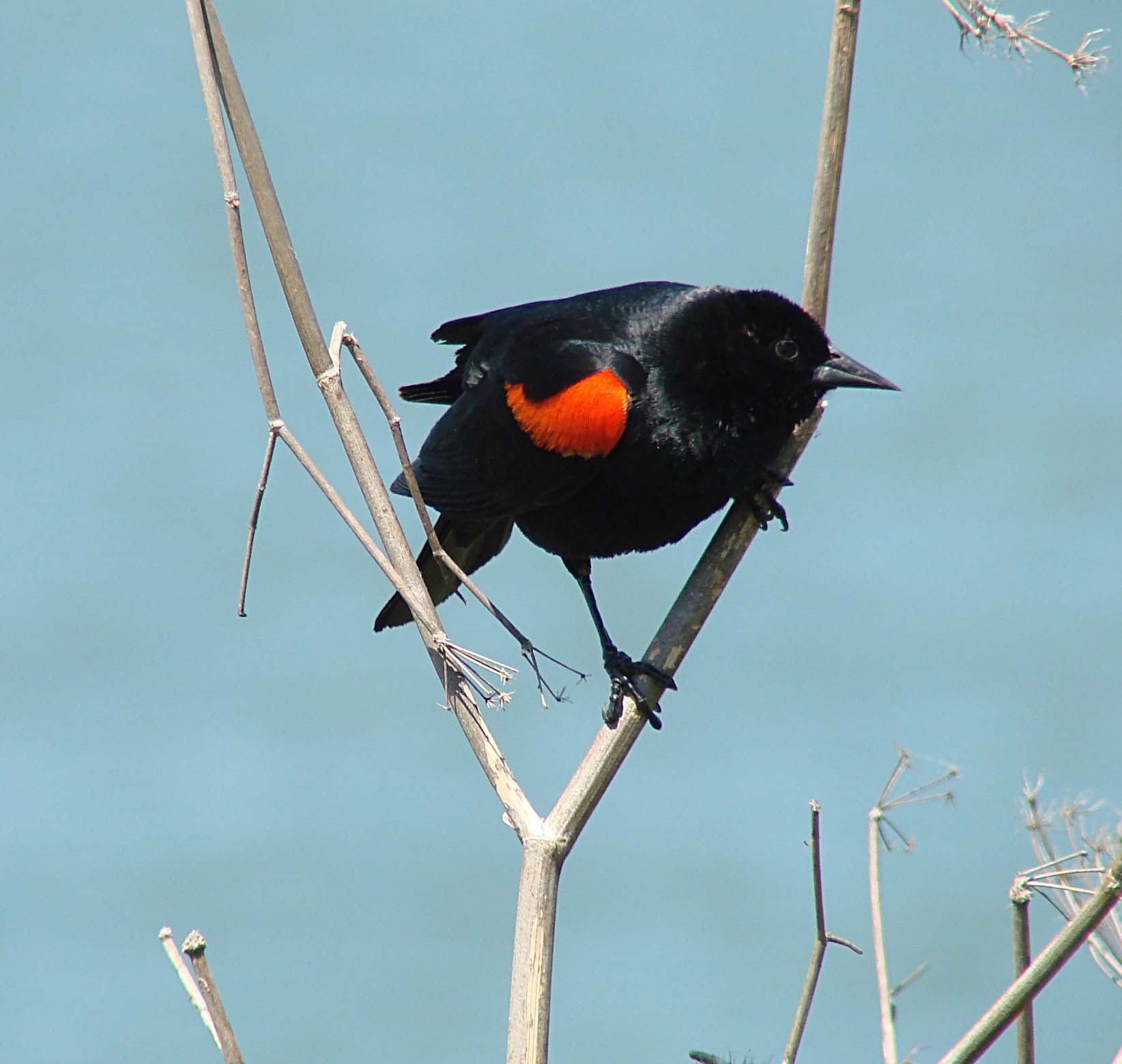 First time I notice the red spots on the male Red-winged Blackbird's back