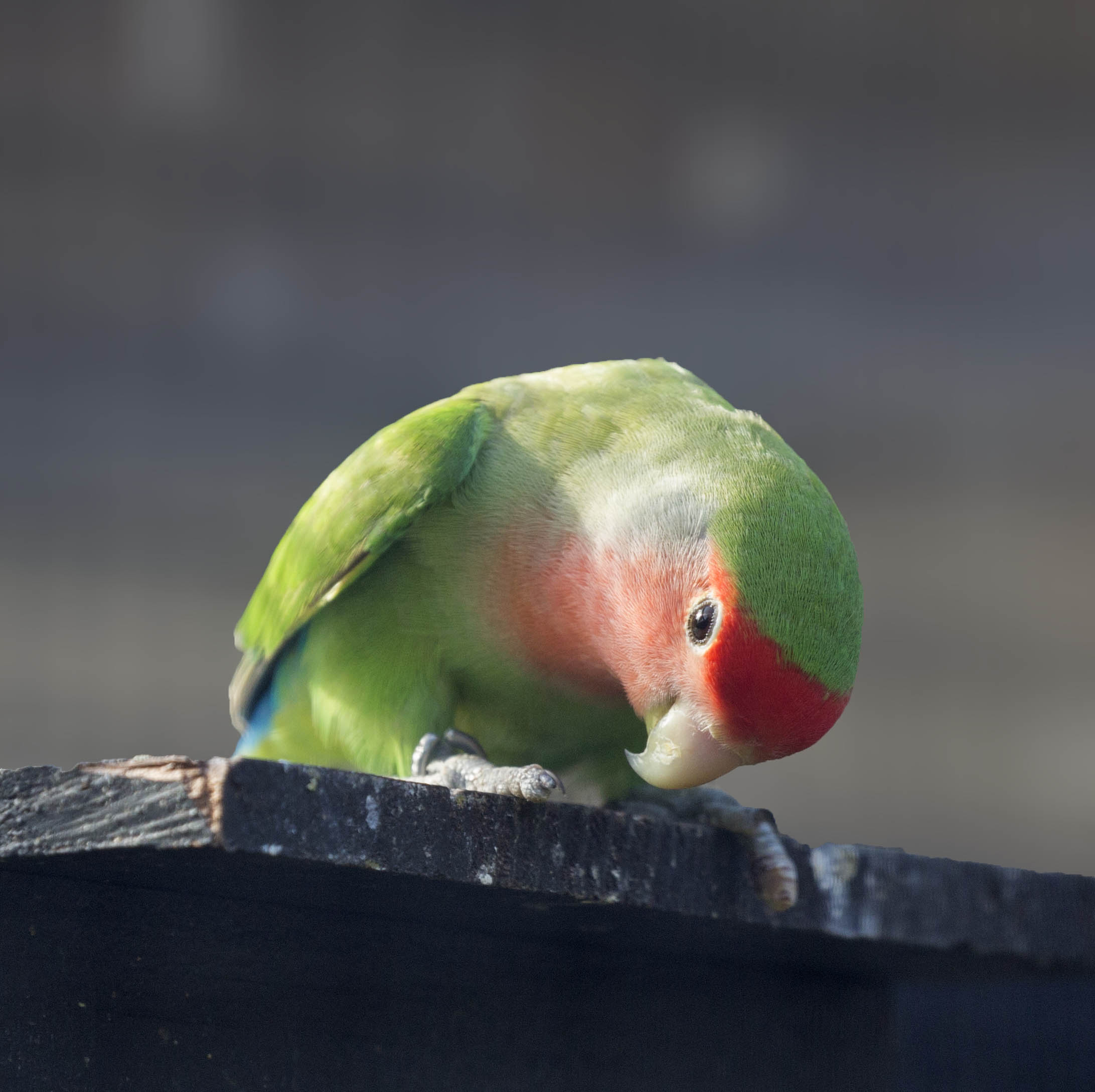 The Rosy-faced Lovebird is also known as the Peach-faced Lovebird and the Rosy-collared Lovebird. They are native to arid regions in southwestern Africa such as the Namib Desert. Both sexes look identical. They mainly eat seeds and can be a pest in grain fields.
