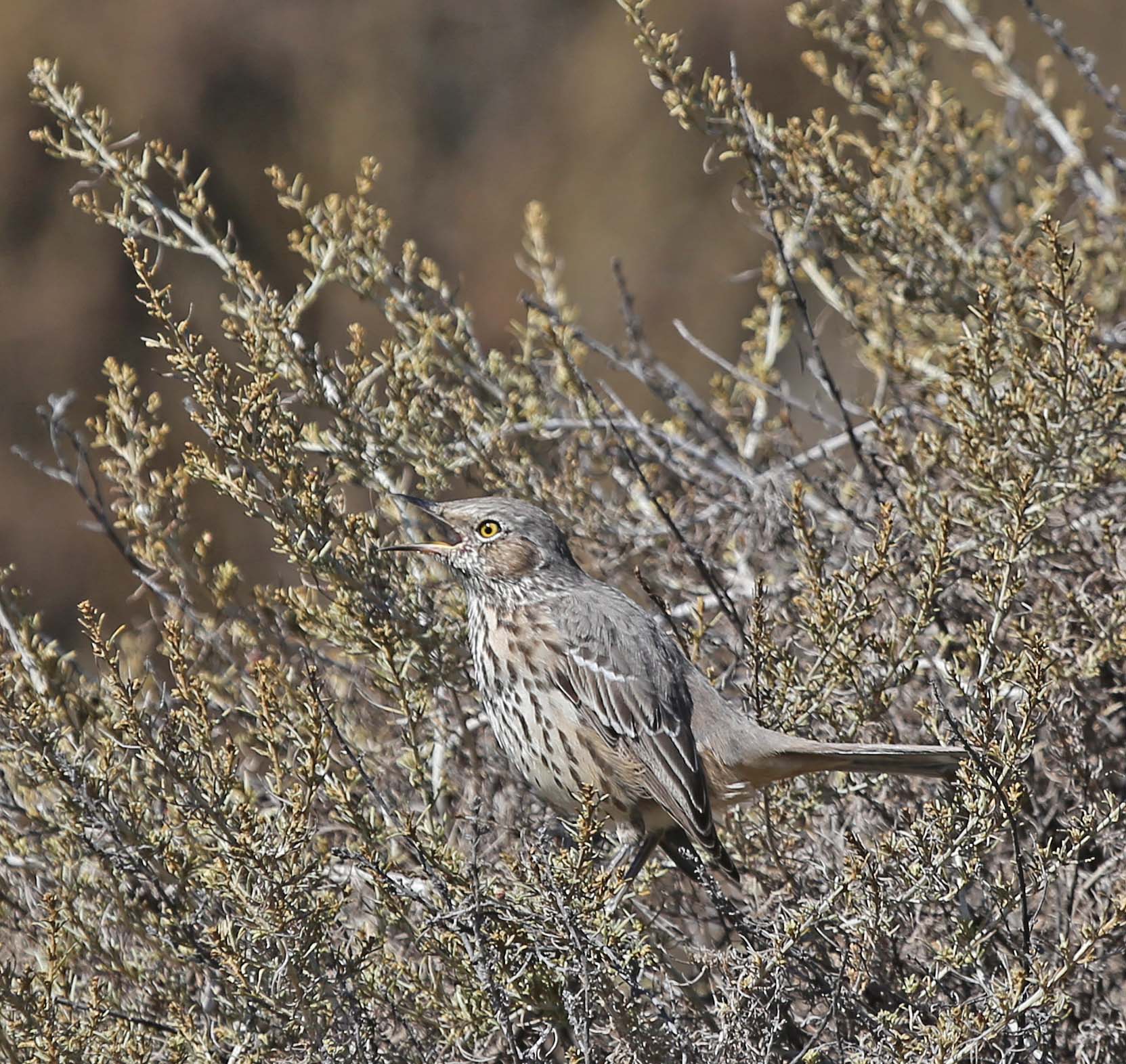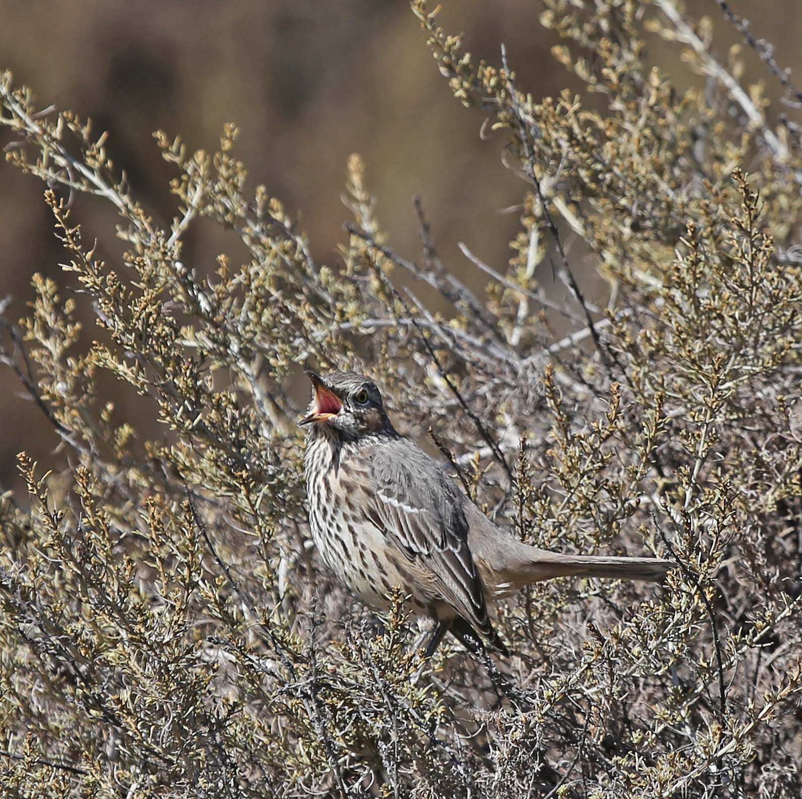 Sage Thrashers have one of the shortest and least decurved bills of all the thrashers. Sage Thrashers breed in western North American from southern Canada to northern Arizona and New Mexico in areas where sagebrush is found. During the winter, they migrate into Mexico.