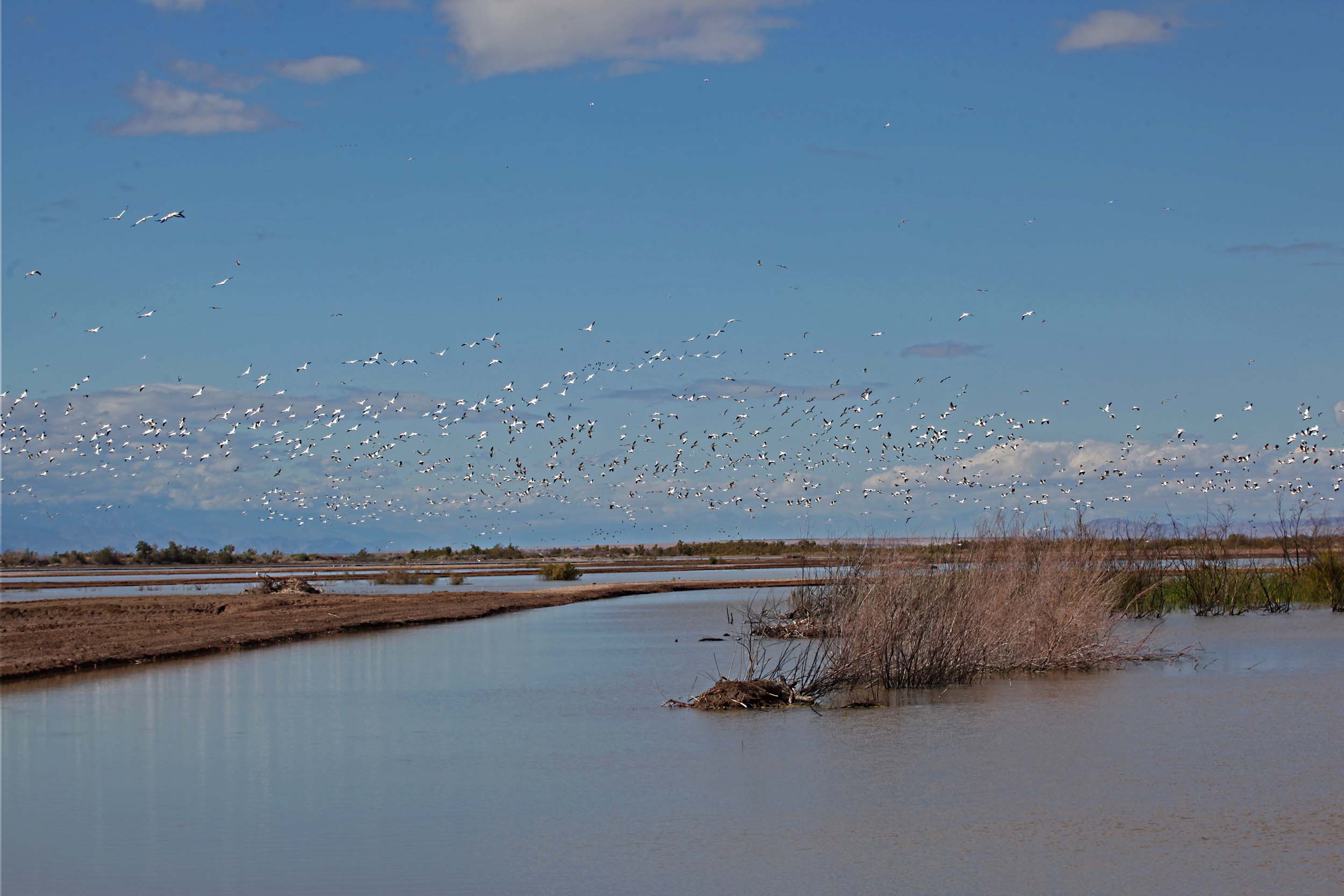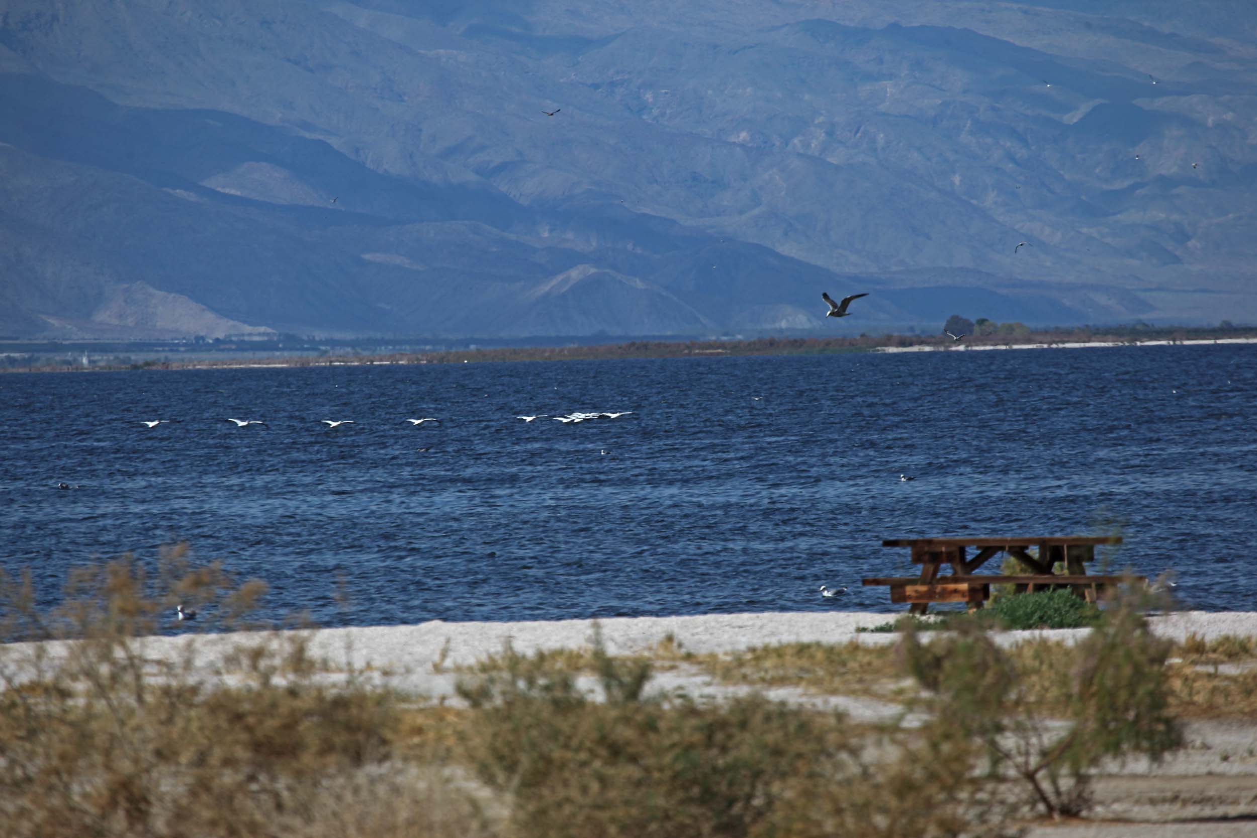 Salton Sea, CA.The Salton Sea is the largest lake in California. It is below sea level, though not as much as Death Valley. The Salton Sea is part of the flyway for migrating and wading birds.